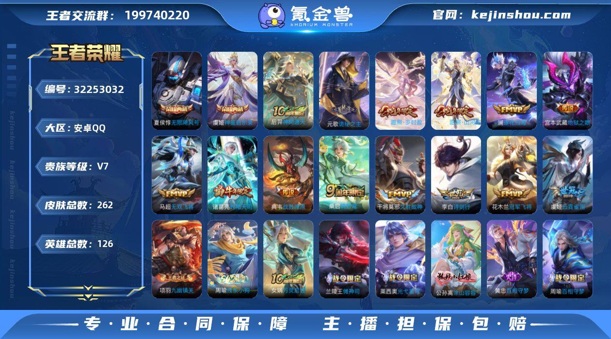 【WZ4373】贵族7/皮肤262/典藏2/传说14/史诗71/英雄126/刘邦全皮/孙权全皮/无限飓风号/神鉴启示录/神树通天/诡秘之主/愿照·山河定/愿照·岁时盈/鸣野蒿/典韦战鼓燎原/澜逐花归海/诗剑行/无双飞将/时雨天司/久胜战神/云霓雀翎/冠军飞将/地狱之眼/蔡文姬夏日便利店/虞姬夏日便利店/天穹之誓(s36)/谪仙醉月/阴阳师/皇家上将/蔷薇恋人/死亡摇滚/玩趣恶龙/迷踪丽影/重明(s11)/无心/朔风刀(s17)/穷奇(s12)/魔术师/万华元夜(s22)/沙漠行僧(s26)/海滩派对/醍醐杖(s20)/冰锋战神/演武夺筹(s23)/夺宝奇兵/至尊宝/孙行者/如梦令-后羿/银河之约/云中旅人(s29)/驱傩正仪(s24)/寅虎·心曲/黎明之约/华丽摇滚/原初探秘者(s21)/千军破阵(s25)/混沌棋(s18)/星空之诺/大漠名商(s28)/疑决卦(s19)/李小龙/擒涛扼浪(s31)/御狮(s13)/御霄(s14)/天狼绘梦者/海盐诗旅(s30)/鬼谷子天穹祈灯(S34)/龙武盛年/剑破天穹(s35)/程咬金群星魔术团/熔金海岸/噬灭天穹(s37)/谧流熔炉/虚灵犬护/逆浪荇歌/荣光之誓/星界战将/九幽镇关/破空之剑/神迹守卫/百相守梦-百里守约/百相守梦-老夫子/茶境仙/访茗客/鸭鸭历险记-刘禅/鸭鸭历险记-沈梦溪/百相守梦-周瑜/百相守梦-孙策/傩神司/光弋星穹/往忆晖光/线条小狗-周瑜/万灵...