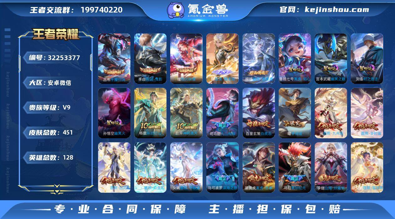 贵族等级:V9 典藏皮肤数:3 珍品无双皮肤数:0 无双皮肤数:1 珍品传说皮肤数:1 传说皮肤数:51 史诗皮肤数:152 皮肤数:451 英雄数:128 段位:星耀