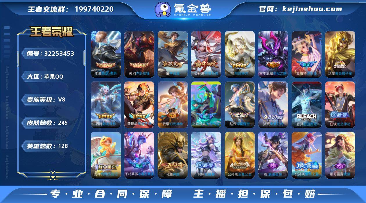 V8 2典藏 1珍品传说 23传说 128英雄 245皮肤 可修改实名 男号 【英雄全皮】敖隐全皮,孙权全皮,蚩奼全皮,苍全皮,夏洛特全皮,影全皮,大禹全皮 【稀有英雄】敖隐(小龙人),大司命,嬴政(始皇帝),韩信(韩跳跳),夏洛特(夏师傅),艾琳,橘右京(橘子),娜可露露(鸟人),不知火舞,赵云,金蝉(唐僧),戈娅 【荣耀水晶】鸣剑·曳影,赤影疾锋 【珍品传说】怪盗基德 【传说皮】神骥·逐星野,神骥·越千峰,琥珀纪元马超,祥瑞亨通,幻光神枪,神树通天,李逍遥,游龙清影(小青龙),黄金狮子座,地狱之眼,末日机甲-孙尚香(绿蚂蚱),淬星耀世,炽阳神光,超时空战士-狄仁杰,末日机甲-孙策,挚爱之约,浮生妄,妄想奇谈 【珍宝阁皮】妄想食味,女武神 【赛季/战令皮】噬灭天穹(s37),剑破天穹(s35),天穹祈灯(s34),天穹之誓(s36),混沌棋(s18),疑决卦(s19),醍醐杖(s20),原初探秘者(s21),万华元夜(s22),演武夺筹(s23),驱傩正仪(s24),千军破阵(s25),西部大镖客-猪八戒,暗影游猎(游乐娃子),潮玩骑士王,云间偶戏,神迹守卫-墨子,航海奇遇记,沙漠行僧(s26) 【史诗皮】星界战将,百相守梦-百里守约,茶境仙,狼魂孤将,器灵·浮梦炉,化蝶舞,线条小狗-周瑜,九幽镇关,线条小狗-小乔,巫礼祀神,万灵启世,鸭鸭历险记-刘禅,龙之律动,石田雨龙...