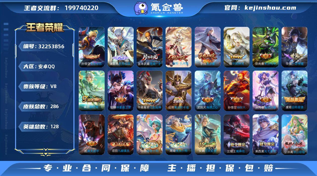 0B703N可二次286皮肤无双1水晶3珍品传说1传说14优质限定8 信用分合格 钱包已注销 水晶皮肤:全息碎影,武则天, 小兵皮肤:雪境奇遇, 无双皮肤:天机白泽, 珍品传说皮肤:黑崎一护, 传说限定:凤求凰,愿照·九州拓,启明星使, 传说皮肤:一念神魔,末日机甲-孙尚香,黄金射手座,地狱火,绛天战甲,炽阳神光,海洋之心,仲夏夜之梦,久胜战神,音你闪耀,鸣野蒿, 新史诗限定:万灵启世,涂山容容, 史诗限定:东方月初,谪仙醉月,器灵·浮梦炉, 新史诗皮肤:石田雨龙, 优质史诗皮肤:天秀·启明,暗渊魔法,晚萤,修罗,魅语,时之恋人-孙尚香,白蛇, 周年皮肤:江河有灵, 珍宝阁:蔷薇恋人, 史诗皮肤:星夜王子,圣诞狂欢,末日机甲-吕布,无心,乘风破浪,幽灵船长,德古拉伯爵,水晶猎龙者,未来纪元-赵云,节奏热浪,鬼剑武藏,千年之狐,紫霞仙子,白龙吟,暗隐猎兽者,曙光守护者,原初追逐者,热力回旋,纤云弄巧,金属风暴,龙骑士,魅力维加斯,女仆咖啡,摇滚巨星,冰雪圆舞曲,心灵骇客,偶像歌手,拒霜思,水果甜心,电玩小子,鹰眼统帅,逐浪之夏,特工魅影,无限星赏官,箭羽风息,绅士熊喵,电玩·爆裂旋风,舞动绿茵