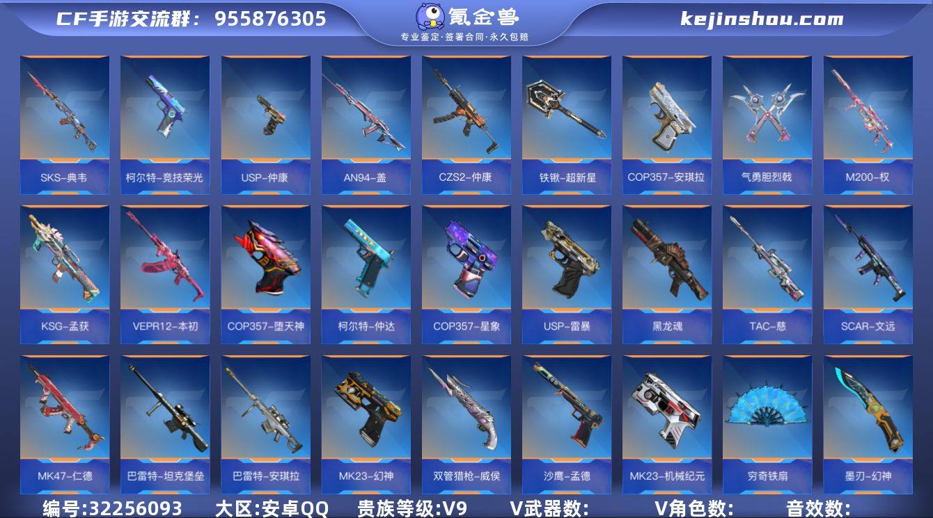 【FC-pL4BXz】安卓QQ,角色等级:180,实名:有修改人脸机会/实名是本人,段位:枪神,VIP等级:V8,V武器数量:281,V角色数量:19,V总数量:281,王者武器数:33,万化数量:463, 【人物角色】洛克,关小雨,海滩夜玫瑰,子涵,娜塔莎,樱,幽灵刀锋-觉醒,大老师,堕天使,复仇者,运动宝贝兰,葵,铁骑,洛伊,夏日灵狐,暗影,春节兰,圣诞灵狐,幻影,灵狐者,猎狐者,奥摩,斯沃特,秦师,炽天使-X,武媚,杨玉凝-X,云悠悠-心动起点,龙妹,蝉,木兰,奥妹,蜀雪,月神,妩媚妖姬,变装舞会兰,赛丝,麻雀,职场灵狐-赛事经理,岚兮儿,斯薇特, 【王者武器】王者之业,王者之兽,蝴蝶刀-天神,唐刀-华夏传说,M12S-雷霆王者,王者之蝶,王者之掣,王者之心手雷,王者之兽手雷,王者之圣手雷,王者之心烟雾弹,王者之心闪光弹,王者之兽闪光弹,王者之影闪光弹,王者之圣闪光弹,王者之兽烟雾弹,王者之影烟雾弹,王者之圣烟雾弹,王者之心,王者之影,王者之翼,王者之势,王者之光,王者之魂,王者之锋,王者之刺,王者之击,王者之烈,王者之迹,王者之痕,王者之神,王者幻神,王者之狱,王者之隐, 【至尊套装】心至尊,狱至尊,王者幻神至尊套, 【带V枪械】47-云舞-千变,王者之圣手雷-冰霜奇迹,王者之心闪光弹-HeartShot,王者之心烟雾弹-HeartShot,王者之圣烟雾弹-冰霜奇迹,M4A1-哈迪斯,M4A1-冰锋觉醒,M4A1-海骑士,M4A1-赛博雷神,M4A1-雷霆,M4A1-机械迷城,M4A1-仲达,M4A1-龙血,M4A1-Rush-夜袭,M4A1-星象,M4A1-游骑兵,M4A1-玫瑰精灵,M4A1-死神,M4A1-黑骑士,M4A1-雷神,47-云舞,47-机械纪元,47-仁德,AK47-波塞冬,AK47-血武士,AK47-雷麒麟,AK47-燎天净火,AK47-奉先,COP 357-堕天神,AK47-Rush-星速,AK47-常胜,AK47-耀金伯爵,AK47-黑武士觉醒,AK47-火麒麟,AK47-无影,81式-光...