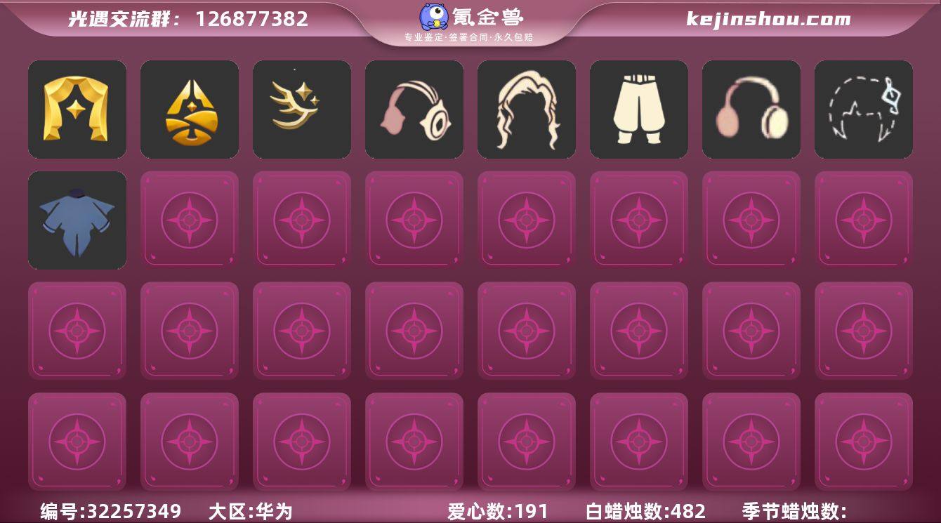 华为渠道五季猛0白枭蛛网斗武士裤【JLGY6797】 常驻:云野,雨林,霞谷,暮土 季节:表演季,欧若拉,归巢季,九色鹿,迁徙季 礼包:彩虹耳机,巫树犄角,玉兔发饰,蓝色音乐会,TGC斗篷黑,创始人斗篷,蛛网斗篷,雏鸟之琴,瑞气纸伞,雪人头饰 热门复刻:武士裤,虚荣,正太头,猫猫头,花环长发,红耳机,箬笠,高音钢琴,白金斗篷,黑金斗篷,红金斗篷,黄鼠狼面具,疯帽匠发型,女巫发型 热门物品:帝企鹅发,黄眉企鹅面具,燕尾斗篷,留辫蘑菇头,高领舞服,透明蝶翼斗,粗框眼镜,季卡相机,五塑彩带斗,五塑彩羽发,九色鹿飞天斗篷,九色鹿丝带裤,九色鹿丸子头,蓝色毛绒绒鞋,蓝色毛绒裤子,海牛鹿角头饰 资源:482/191 身高0.80-12.80,当前1.11 -具体资源以衣柜为准-