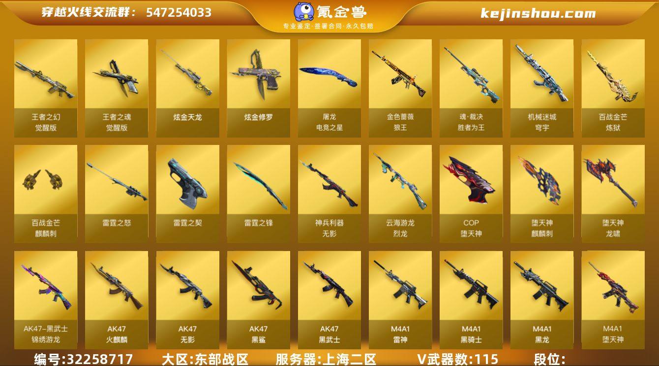 ABC11049/东部/上海二区/钱包注销/可排位/掌火ID:377502920/115V/幻神/幻神电竞之星/幻神纸灯龙/M200竞技荣光/裁决/裁决凤灵/雷霆套/COP雷霆/COP堕天神/朱雀/QBZ金色蔷薇/金色蔷薇破浪逐光/黑骑士/雷神/火麒麟/黑龙/【小人枪】/水枪不败狙神/天龙乔伊教练/迷你救赎猎手/巴雷特零水下丽影/【四防已开】/王者零国色天香/【角色】/葵/迷迭香/炫/零纪元/狐影/幻面灵狐/葵阿尔法武装/奇洋探员/乔伊教练/雪域霜狐/云海玲珑在在【音效卡】/炼狱百战金芒音效卡/白虎盛典舞曲音效卡/火麒麟音效卡/毁灭音效卡/朱雀电竞之星音效卡/黑骑士音效卡/永久AC/细节看图