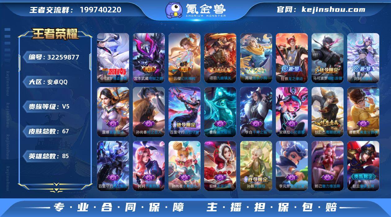 苹果Q-V7-尊贵铂金I段位-90英雄-81皮肤-10传说-23史诗 QW263808 【传说皮肤】:孙策末日机甲,赵云淬星耀世,铠绛天战甲,曜云鹰飞将,李信一念神魔,刘备时之恋人,达摩黄金狮子座,花木兰冠军飞将,诸葛亮武陵仙君,宫本武藏地狱之眼 【限定皮肤】:狄仁杰阴阳师,赵云皇家上将,吕布猎兽之王,夏侯惇匿光决锋者,典韦岱宗,狄仁杰魔术师,狄仁杰万华元夜,项羽海滩派对,项羽霸王别姬,老夫子醍醐杖,韩信飞衡,兰陵王金庭之子,孙悟空大圣娶亲,牛魔御旌,李元芳云中旅人,鬼谷子原初探秘者,诸葛亮武陵仙君,弈星混沌棋,明世隐疑决卦,裴擒虎李小龙,米莱狄御霄,桑启海盐诗旅,刘邦剑破天穹 【年限皮肤】:典韦岱宗,韩信飞衡 【赛季限定】:米莱狄御霄,牛魔御旌,弈星混沌棋,明世隐疑决卦,老夫子醍醐杖,鬼谷子原初探秘者,狄仁杰万华元夜,兰陵王金庭之子,李元芳云中旅人,桑启海盐诗旅,刘邦剑破天穹,太乙真人谧流熔炉 【战令限定】:吕布猎兽之王 【史诗皮肤】:夏侯惇匿光决锋者,裴擒虎李小龙,瑶遇见神鹿,橘右京修罗,典韦岱宗,韩信飞衡,狄仁杰鹰眼统帅,孙悟空大圣娶亲,孙策猫狗日记,阿轲节奏热浪,铠曙光守护者,亚瑟心灵战警,夏侯惇乘风破浪,项羽霸王别姬,韩信白龙吟,张飞乱世虎臣,吕布末日机甲,李白千年之狐,吕布圣诞狂欢,宫本武藏鬼剑武藏,狄仁杰魔术师,王昭君偶像歌手,赵云皇家上将 【其他皮肤】:明世隐景韶洛都,太乙真人谧流熔炉,刘邦剑破天穹,桑启海盐诗旅,李元芳云中旅人,米莱狄契约魔法,兰陵王金庭之子,狄仁杰万华元夜,鬼谷子原初探秘者,老夫子醍醐杖,盾山圆桌骑士,明世隐疑决卦,弈星混沌棋,小乔丁香结,牛魔御旌,吕布猎兽之王,米莱狄御霄,苏烈坚韧之力,狂铁命运角斗场,王昭君幻想奇妙夜,钟无艳海滩丽影,狄仁杰阴阳师,典韦黄金武士,妲己少女...