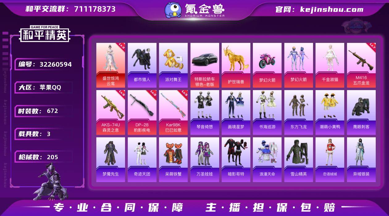 【特价出售】钱包不能注销苹果Q-1红装4稀有3载具2粉装12特效枪17热门159套装205枪皮 67194热力值 6印记 历史超级王牌14星 【1红装】 盛世惊鸿-云鸾 (3级) 【4稀有】 都市猎人 浪漫天命 派对舞王 派对舞王(金靴子) 【3载具】 特斯拉3银色 护世瑞兽 双人摩托梦幻火箭 【2粉装】 梦幻火箭 千金淑猫 【12特效枪】 M416-五爪金龙 (7级) AKS-74U-森灵之息 (5级) Kar98K-巳巳如意 (5级) DP-28-豹影疾电 (5级) Mk14-樱桃泡泡 (4级) 汤姆逊-热量炸弹 (5级) AKS-74U-森灵之息 (5级) Mk14-福马献瑞 (5级) AA12-G-萌骑幻想 (1级) PKM-萌骑夺宝 (1级) UMP45-萌骑冒险 (1级) ACE32-萌骑漫游 (1级) 【17热门】 奇迹天团 星光纪元 红熊茄茄 雪山精英 东方飞龙 潮萌小黄鸭 恶魔人蛛 梦魇先生 呆萌铁蟹 万圣娃娃 鹰眼刺客 奇迹天团 暗影哥特 漫步者 破蛋小黄鸡 黑色刀锋 极速红龙 【1飞行器】 梦幻火箭飞行器 【4头盔】 银河战甲头盔 精灵迷巫头盔 梦幻火箭头盔 百万伏特头盔 【3背包】 梦幻火箭背包 百万伏特背包 深海曼妙背包
