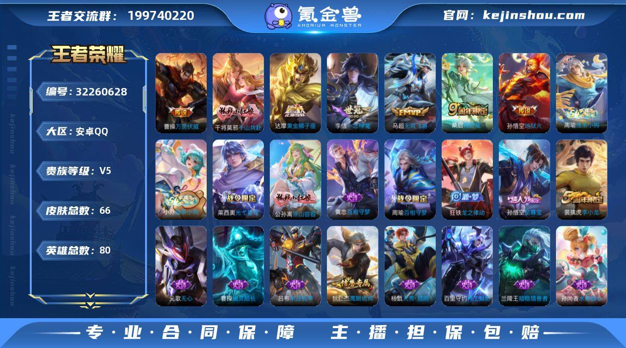 安卓Q-V7-荣耀黄金II段位-111英雄-121皮肤-9传说-35史诗【传说皮肤】:马超无双飞将,曜云鹰飞将,李信一念神魔,貂蝉猫影幻舞,后羿黄金射手座,貂蝉仲夏夜之梦,李白凤求凰,孙尚香末日机甲,孙悟空地狱火【限定皮肤】:狄仁杰阴阳师,赵云皇家上将,妲己时之彼端,庄周高山流水,芈月白晶晶,元歌无心,马可波罗暗影游猎,狄仁杰魔术师,狄仁杰万华元夜,达摩沙漠行僧,项羽海滩派对,老夫子醍醐杖,程咬金演武夺筹,韩信飞衡,兰陵王金庭之子,孙悟空孙行者,后羿辉光之辰,李元芳云中旅人,钟馗驱傩正仪,干将莫邪胡桃夹子,鬼谷子原初探秘者,苏烈千军破阵,弈星混沌棋,沈梦溪大漠名商,明世隐疑决卦,裴擒虎李小龙,云中君纤云弄巧,伽罗天狼溯光者,猪八戒西部大镖客,上官婉儿梁祝【年限皮肤】:李白凤求凰,后羿辉光之辰,韩信飞衡【赛季限定】:弈星混沌棋,明世隐疑决卦,老夫子醍醐杖,鬼谷子原初探秘者,狄仁杰万华元夜,程咬金演武夺筹,钟馗驱傩正仪,苏烈千军破阵,达摩沙漠行僧,兰陵王金庭之子,沈梦溪大漠名商,李元芳云中旅人【战令限定】:马可波罗暗影游猎,猪八戒西部大镖客,周瑜线条小狗【史诗皮肤】:赵云皇家上将,赵云未来纪元,貂蝉圣诞恋歌,...