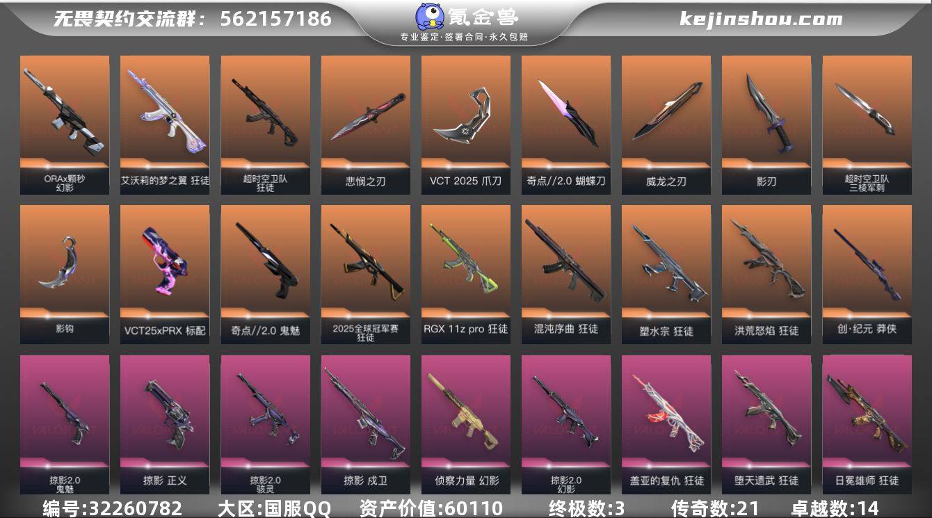 【自带包赔 可赔三倍】:库存价值60110 限定25狂徒 VCT爪刀 怜悯之刃 多热门主战皮肤 性价比超值库存号 【限定】: 无畏契约季前邀请赛 悲悯之刃, 2025全球冠军赛 狂徒, VCT 2025 爪刀 【近战】: 无畏契约季前邀请赛 悲悯之刃, 超时空卫队 三棱军刺, 奇点//2.0 蝴蝶刀, 影钩, VCT 2025 爪刀, 影刃, 威龙之刃 【狂徒】: 堕天遗武 狂徒, 超时空卫队 狂徒, 紫阙金琅 狂徒, 2025全球冠军赛 狂徒, 日冕雄师 狂徒, RGX 11z Pro 狂徒, 洪荒怒焰 狂徒, 掠影 狂徒, 塑水宗 狂徒, 盖亚的复仇 狂徒, 混沌序曲 狂徒, 艾沃莉的梦之翼 狂徒 【幻影】: ORA x 颗秒 幻影, 掠影//2.0 幻影, 侦察力量 幻影 【冥驹】: 掠影 冥驹 【正义】: 掠影 正义 【戍卫】: 掠影 戍卫 【鬼魅】: 掠影//2.0 鬼魅, 奇点//2.0 鬼魅 【骇灵】: 掠影//2.0 骇灵 【标配】: VCT25 x PRX 标配 【飞将】: 盖亚的复仇 飞将 【奥丁】: 掠影//2.0 奥丁 【莽侠】: 创·纪元 莽侠 【概要】: 总皮肤 112 终极 3 传奇 21 卓越 14 刀皮 英雄 28 LV 212 历史最高:超凡 当前段位:钻石二 已使用 1410 R点 剩余 50 R点 可二次 卡面、挂饰、其他皮肤请看截图 道具、段位等以实际验号为准。如账号因没有维护,赛季更新等不可抗因素发生变化,不属于账号质量问题"