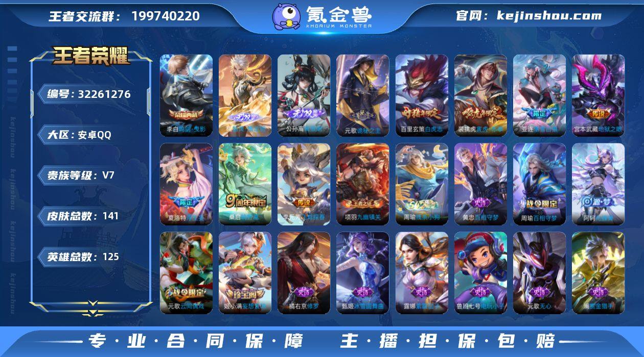 【特价出售】安卓q-V-141皮肤1典藏2无双8传说 【典藏】 鸣剑曳影 【无双】 离恨烟 器灵螭龙剑 【传说】 落雪白狼 诡秘之主 鸣野蒿 白虎志 寅虎赤拳 浮生妄 飞鸢探春 地狱之眼 【热门】白虎志 后羿如梦令 冰冠公主 原初追逐者 云间偶戏 苍穹之光 电玩小子 黄忠百相守梦 水晶猎龙者 暗隐猎兽者 热力回旋 特工魅影 特工战影 妄想食味 逐浪之夏 修罗 千年之狐 紫霞仙子 末日机甲男 星夜王子 赏金猎手 节奏热浪 偶像歌手 街头霸王 摇滚巨星 鬼剑武藏 冰雪圆舞曲 青焰无极 花好人间 克喵 未来纪元赵云 拳王 大漠名商 云中旅人 丁香结 海盐诗旅 皇家上将 擒涛扼浪 探海日志 水果甜心 古海寻踪 蔬乡物语鲁班 天穹祈灯 无心 驭风魔法 星界游侠 江河有灵 荣光圣徽 纤云弄巧 超元猎域 五谷丰年 遇见飞天 鹰眼统帅 魔术师 125英雄-营地ID:1792791304