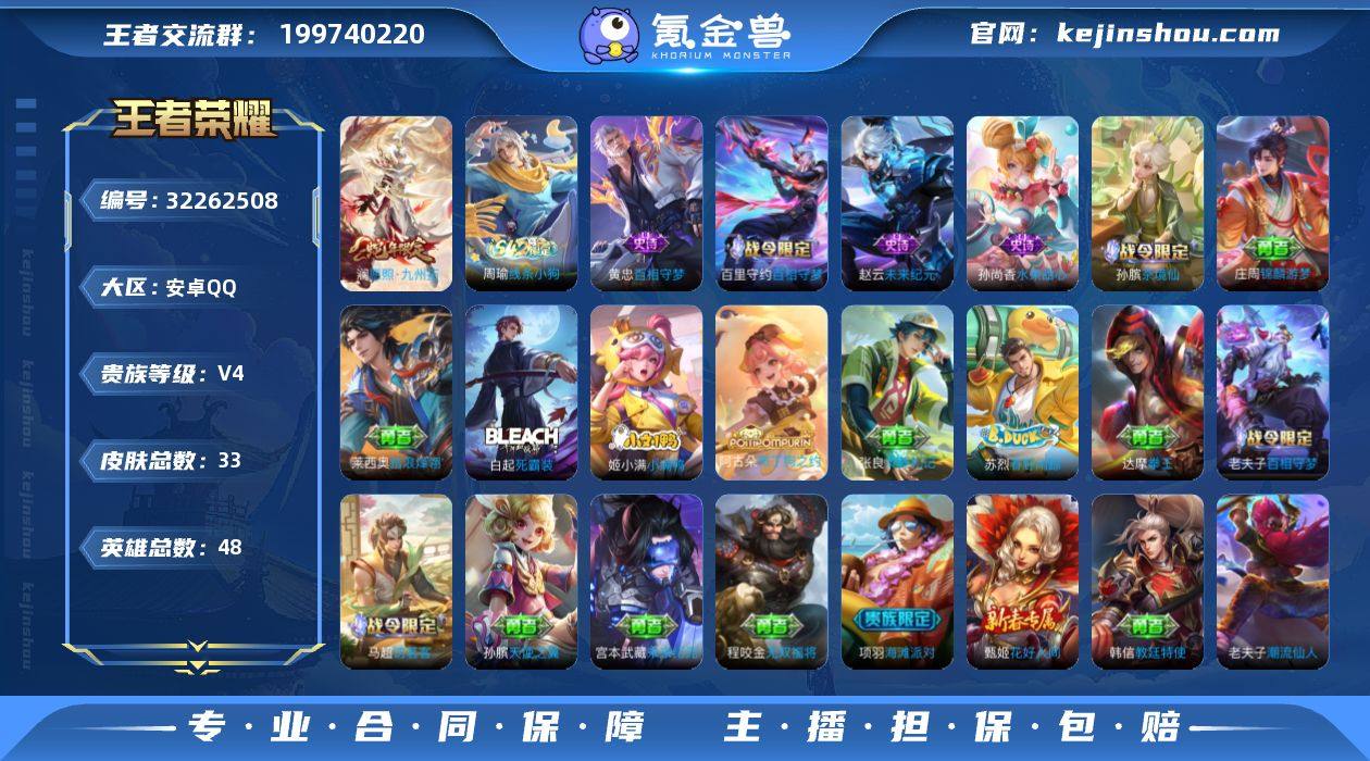【WZ181270】安卓Q-V4-尊贵铂金III段位-48英雄-33皮肤-1传说-5史诗【传说皮肤】:澜愿照九州拓【限定皮肤】:项羽海滩派对【年限皮肤】:澜愿照九州拓【战令限定】:百里守约百相守梦,老夫子百相守梦,孙膑茶境仙,马超访茗客,周瑜线条小狗【史诗皮肤】:周瑜线条小狗,黄忠百相守梦,孙膑茶境仙,百里守约百相守梦,孙尚香水果甜心,赵云未来纪元【其他皮肤】:兰陵王雾影缉谜,莱西奥踏浪烽翎,庄周锦麟游梦,白起死霸装,姬小满小满鸭,阿古朵布丁狗之约,张良灵野札记,苏烈春野闲踪,马超访茗客,老夫子百相守梦,程咬金无双福将,甄姬花好人间,达摩拳王,孙膑天使之翼,宫本武藏未来纪元,韩信教廷特使,项羽海滩派对,澜孤猎,盾山极冰防御线,孙策海之征途,米莱狄精准探案法,周瑜海军大将,小乔万圣前夜,老夫子潮流仙人,貂蝉异域舞娘,鲁班七号福禄兄弟【营地ID】:1624217196