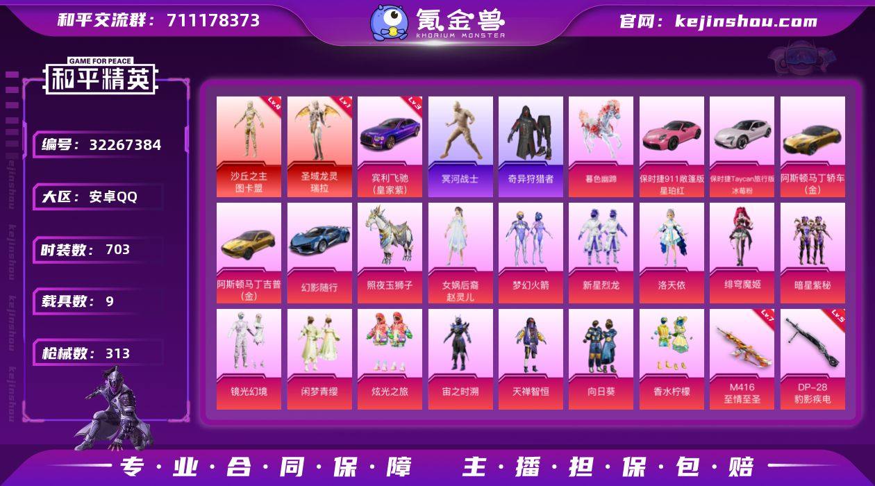【特价出售】钱包不能注销安卓Q-2红装4稀有10载具13粉装18特效枪25热门200套装313枪皮 132295热力值 13印记 历史卓越王牌16星 【2红装】 圣域龙灵-瑞拉 (1级) 沙丘之主-图卡盟 (4级) 【4稀有】 木乃伊 奇异狩猎者 AKM-百万伏特 浪漫天命 【10载具】 暮色幽蹄 宾利飞驰皇家紫 (3级) 阿斯顿马丁X金色 阿斯顿马丁S金色 保时捷Taycan旅行版(冰莓粉) 保时捷911敞篷版(星珀红) 幻影随行 照夜玉狮子 塞莎霓虹粉 (1级) 空客蔚蓝之翼僚机 【13粉装】 梦幻火箭 赵灵儿 绯穹魔姬 洛天依 炫光之旅 镜光幻境 闲梦青缨 宙之时溯 天禅智恒 新星烈龙 向日葵 香水柠檬 暗星紫秘 【18特效枪】 SCAR-L-万古烈焰 (3级) M416-心之恋语 (1级) P90-沙丘之主 (3级) AKM-炫紫旋律 (5级) AKM-绿萝繁花 (5级) UMP45-宇宙意志 (3级) Kar98K-巳巳如意 (5级) Vector-绯穹魔姬 (5级) M762-甜蜜誓约 (4级) DP-28-豹影疾电 (5级) 蜜獾-异瞳寒姬 (1级) AUG-超新星 (5级) AMR-炫光之旅 (5级) GROZA-圣辉之星 (5级) GROZA-香水柠檬 (1级) M416-至情至圣 (7级) MG3-洛神天依 (4级) 破片手榴弹-粉粉猫爪 (7级) 【25热门】 8号机 Mark.06 青涩年华 六号树人 大橘为重 浪漫波比 暗夜契约 暗影哥特 团圆交子 瑞龙福将 纯白誓言 冰爽海盐 蓝甜马卡龙 机械英豪 破蛋小黄鸡 风华少年志 白月香洋装 英勇保护者 AKM-奇异狩猎者 M762-奇异狩猎者 M762-瑞龙福将 M24-奇异狩猎者 S686-奇异狩猎者 Kar98K-深海曼妙 M24-香水柠檬 【4飞行器】 伏魔团飞行器 梦幻火箭飞行器 深渊漩涡飞行器 镜光幻境飞行翼 【3头盔】 梦幻火箭头盔 百万伏特头盔 甜蜜誓约头盔 【3背包】 百万伏特背包 神秘黑猫背包 甜蜜誓约背包