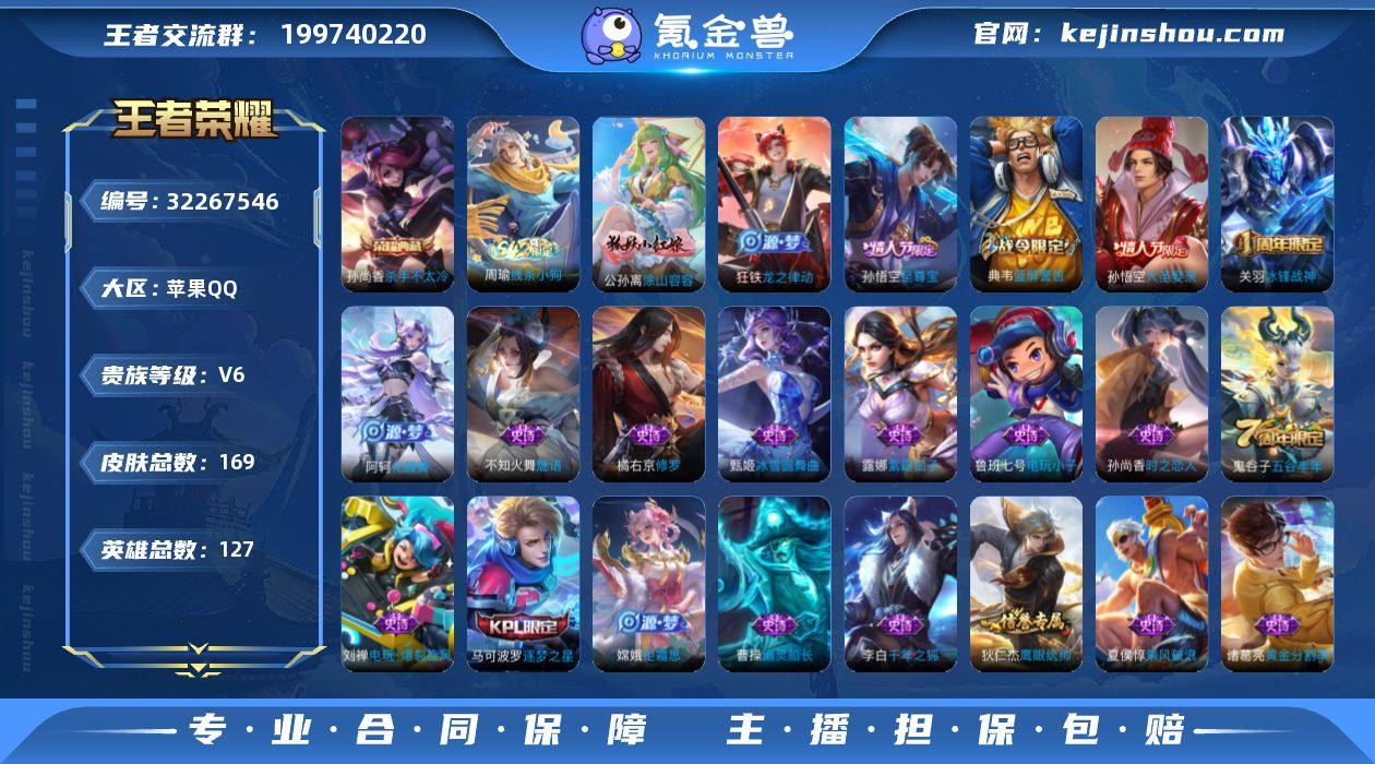 苹果Q 可二次 1典藏127英雄169皮肤 杀手不太冷 涂山容容 至尊宝 冰封战神 逐梦之星 大圣娶亲 拒霜思 猎兽之王 蓝屏警告 神迹守卫钟馗 狮舞东方 朔望之晖 死神来了 电玩小子 电玩爆裂旋风 原初探秘者 暗隐猎兽者 猫狗日记女 金属风暴 白昼王子 特工魅影 特工战影 女武神 黄金分割率 玩趣恶龙 逐浪之夏 修罗 魅语 白龙吟 千年之狐 紫霞仙子 圣诞恋歌 幽灵船长 乘风破浪 圣诞狂欢 天才门将 时之恋人女 偶像歌手 街头霸王 缤纷独角兽 鬼剑武藏 冰雪圆舞曲 王者荣耀账号