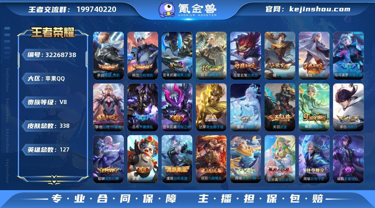 王者19478,不可二次,苹果Q-V8-最强王者段位-127英雄-338皮肤-2典藏皮肤-16传说-95史诗 【英雄全皮】:孙权全皮,猪八戒全皮,空空儿全皮,影全皮 【荣耀典藏】:李白鸣剑曳影,韩信弑枪猎影 【传说皮肤】:后羿神树通天,桑启鸣野蒿,露娜霜月吟,李信山海炽霜斩,李白诗剑行,马可波罗深海之息,曜李逍遥 ,虞姬启明星使,关羽武圣,貂蝉猫影幻舞,达摩黄金狮子座,百里玄策白虎志,梦奇胖达荣荣,李白凤求凰,宫本武藏地狱之眼,吕布天魔缭乱 【限定皮肤】:蒙犽顽岩魄,蔡文姬夏日便利店,虞姬夏日便利店,姜子牙天穹之誓,李白谪仙醉月,狄仁杰阴阳师,赵云皇家上将,赵云龙胆,墨子神迹守卫,嬴政优雅恋人,嬴政白昼王子,鲁班七号狮舞东方,高渐离玩趣恶龙,阿轲迷踪丽影,钟无艳超时空战士,芈月重明,吕布天魔缭乱,吕布猎兽之王,周瑜赤莲之焰,元歌云间偶戏,元歌无心,夏侯惇朔风刀,甄姬落雪兰心,曹操烛龙,典韦穷奇,典韦岱宗,马可波罗暗影游猎,马可波罗深海之息,狄仁杰魔术师,狄仁杰万华元夜,达摩星际陆战队,达摩沙漠行僧,项羽海滩派对,老夫子醍醐杖,老夫子航海奇遇记,关羽武圣,程咬金演武夺筹,刘邦夺宝奇兵,韩信飞衡,王昭君午后时光,兰陵王驯魔猎人,兰陵王金庭之子,花木兰默契交锋,亚瑟潮玩骑士王,孙悟空至尊宝,孙悟空大圣娶亲,孙悟空孙行者,牛魔御旌,后羿辉光之辰,后羿如梦令,张飞虎魄,李元芳银河之约,李元芳云中旅人,虞姬启明星使,钟馗神迹守卫,钟馗驱傩正仪,干将莫邪冰霜恋舞曲,雅典娜单词大作战,雅典娜黎明之约,蔡文姬繁星吟游,鬼谷子原初探秘者,鬼谷子五谷丰年,苏烈千军破阵,百里玄策白虎志,百里玄策原初追逐者,百里守约朱雀志,弈星混沌棋,梦奇顽趣,沈梦溪星空之诺,沈梦溪大漠名商,明世隐疑决卦,裴擒虎李小龙,裴擒虎擒涛扼浪,狂铁御狮,...