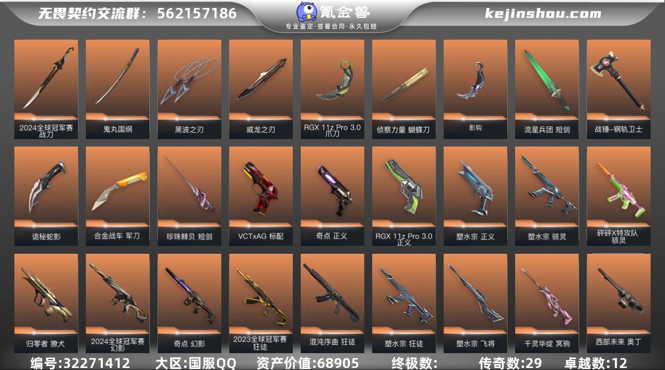 皮肤资产价值:68905 已用源晶点数:1585 威龙之刃-耀鳞威龙,短剑-流星兵团,诡秘蛇影,军刀-合金战车 爪刀-RGX 11z Pro 3.0,影钩-掠影2.0 战刀-2024全球冠军赛,鬼丸国纲-般若假面//2.0,短剑-珍珠棘贝 战锤-钢轨卫士 蝴蝶刀-侦察力量 黑波之刃-塑水宗 离火刃 獠犬-归零者,幻影-2024全球冠军赛,幻影-奇点,狂徒-2023全球冠军赛,狂徒-混沌序曲,狂徒-塑水宗,獠犬-般若假面//2.0,戍卫-天界神兵,幻影-侦察力量,狂徒-盖亚的复仇,狂徒-紫阙金琅,狂徒-掠影,狂徒-般若假面//2.0,狂徒-离子武器2.0,幻影-末日之翼,幻影-神罚,幻影-战术小伙伴,幻影-珍珠棘贝,狂徒-钢轨卫士,狂徒-诡秘蛇影,狂徒-弧光异彩,狂徒-流星兵团,獠犬-复古浪潮,獠犬-弧光异彩,獠犬-战术小伙伴,戍卫-战术熊与伙伴们,戍卫-彩梦之城,戍卫-钢轨卫士,戍卫-折光棱晶,戍卫-珍珠棘贝 骇灵-塑水宗,骇灵-砰砰X特攻队,蜂刺-纤云弄巧,蜂刺-战术小伙伴,蜂刺-深海水族,骇灵-光导纤维,骇灵-流星兵团,骇灵-信手涂鸦,骇灵-珍珠棘贝,蜂刺-折光棱晶 西部未来 奥丁,战神-般若假面//2.0,奥丁-流星兵团,奥丁-末日之翼,奥丁-信手涂鸦,奥丁-战术小伙伴,战神-深海水族 飞将-塑水宗,冥驹-千灵华绽,莽侠-RGX 11z Pro 3.0,冥驹-堕天遗武,飞将-光导纤维,飞将-末日之翼,飞将-信手涂鸦,飞将-战术熊与伙伴们,冥驹-复古浪潮,莽侠-诡秘蛇影,莽侠-深海水族,莽侠-纤云弄巧 标配-VCTxAG,正义-奇点,正义-RGX 11z Pro 3.0,正义-塑水宗,狂怒-般若假面//2.0,鬼魅-耀鳞威龙,标配-超能偶像,标配-光导纤维,标配-折光棱晶,标配-战术熊与伙伴们,短炮-钢轨卫士,短炮-末日之翼,短炮-深海水族,短炮-纤云弄巧,鬼魅-光导纤维,鬼魅-诡秘蛇影,鬼魅-流星兵团,狂怒-钢轨卫士,狂怒-战术熊与伙伴们,狂怒-珍珠棘贝,蒙太奇 狂怒,正义-超限闪存,正义-复古浪潮,正义-日耀风暴,正义-纤云弄巧 判官-诡秘蛇影,雄鹿-彩梦之城,雄鹿-复古浪潮 般若假面2.0卡面,无畏契约GO!第一卷:捷风卡面,无畏契约GO!第一卷:零卡面,无畏契约GO!第一卷:芮娜卡面,无畏契约GO!第一卷:贤者卡面,红鳞松叶卡面,虹吸式咖啡壶卡面,看镜头卡面,离火刃凤卡面,离火刃凰卡面,梦幻奶茶卡面,2024全球冠军赛卡面,RGX11zPro3.0卡面,热舞环节卡面,势不可挡盖可卡面,势不可挡零卡面,双城之战金克丝卡面,双城之战拥抱卡面,声感陷阱设计图卡面,塑水宗卡面,像素瞬间:深海明珠卡面,铁之华卡面,万圣夜卡面,无畏契约暮蝶卡面,我眼中的世界卡面,耀鳞威龙卡面,最高舞台卡面,终章:生意人麦宝卡面 卖家说:二次还要等一段时间 号上还有神话挂饰