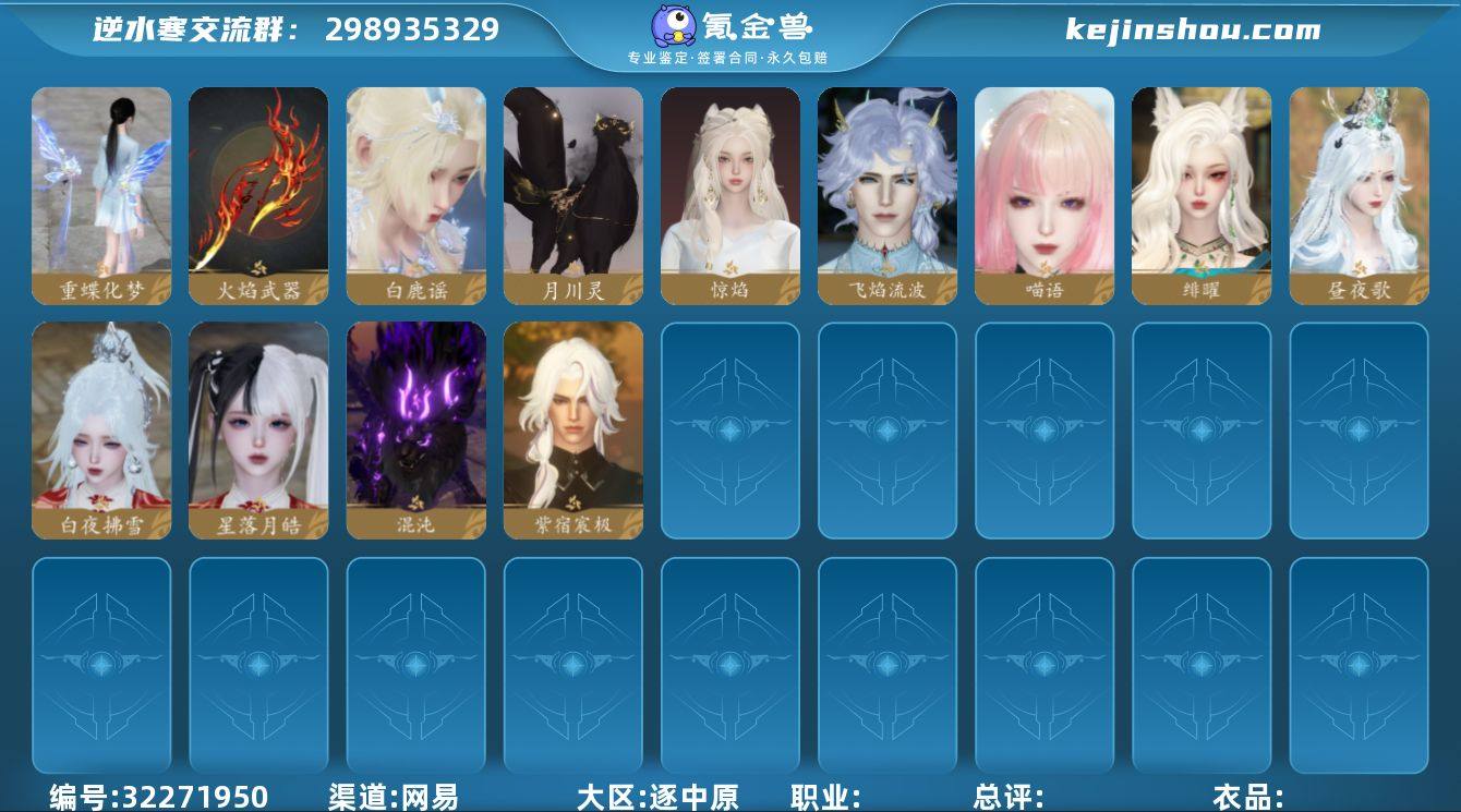 【已用天赏石14】天霓染2, 副本外观9, 馆藏5级, 灵韵7, 7国色, 268610衣品, 64160国色值, 226套时装, 装备特技17金, 宠物图鉴10级, 庄园11级, 详情见图