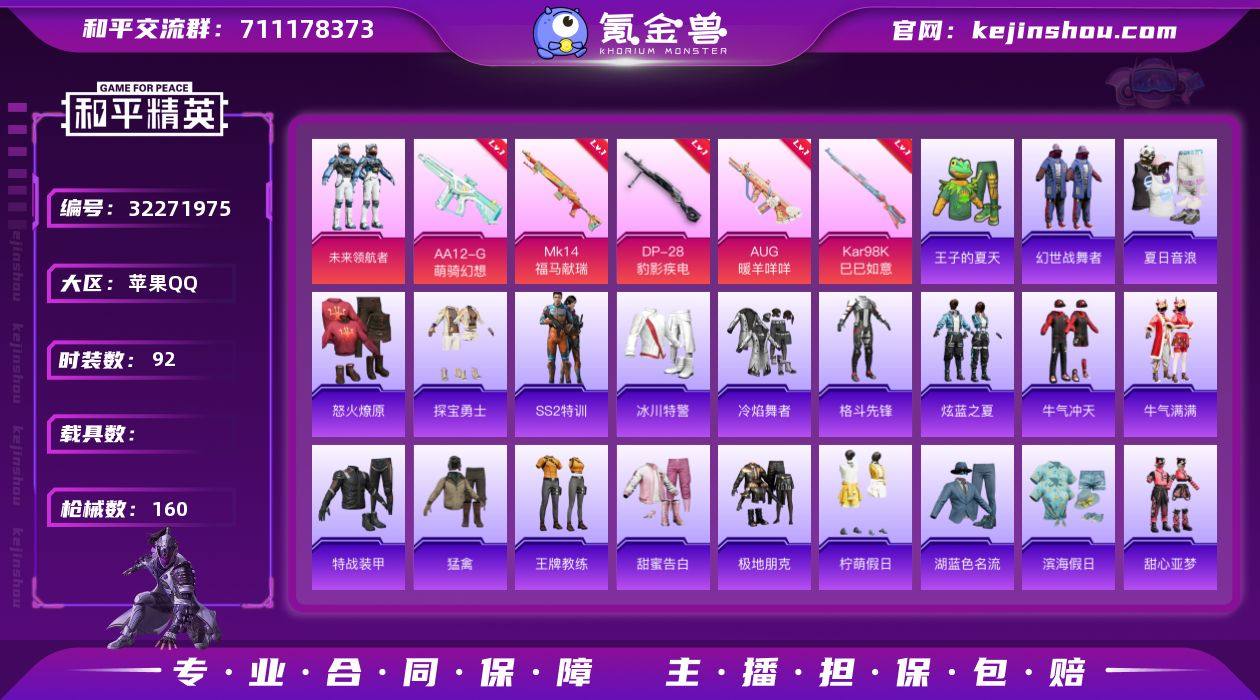可二次【1粉装5特效枪 可秒换绑不用等】 苹果Q区-43486热力值-92套装-160枪皮 【1粉装】 套装-未来领航者【5特效枪】 Mk14-福马献瑞(5级) AA12-G-萌骑幻想(5级) Kar98K-巳巳如意(5级) DP-28-豹影疾电(5级) AUG-暖羊咩咩(5级)【29热门】 M416-蓝色火焰 GROZA-彩虹符号 长空猛禽 弄潮海豚 虚音幻奏 甜心亚梦 牛气冲天 破蛋小黄鸡 SS25特训 SS24特训 SS23特训 SS22特训 Kar98K-王子的夏天 AKM-环太平洋 SCAR-L-玉兔迎春 GROZA-田园牧歌 M762-天降萌叽 M762-彩虹符号 Mk47-乌木金纹 Mini14-旋转彩虹 UZI-娇憨猪猪 UMP45-蓝色火焰 S12K-垂柳戏鸭 M249-彩虹符号 MG3-幻世战舞者 AKM-虎虎生威 AKM-霓虹街区【1飞行器】 炫彩糖果飞行器 营地ID:917686461