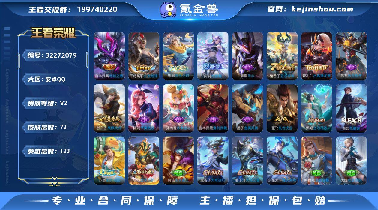 安卓Q 可二次 2传说 123英雄72皮肤 久胜战神 地狱之眼 水晶猎龙者 金属风暴 玩趣恶龙 末日机甲男 节奏热浪 街头霸王 鬼剑武藏 东方不败 群星魔术团程咬金 沙漠行僧 金庭之子 大漠名商 云中旅人 海盐诗旅 擒涛扼浪 探海日志 水果甜心 古海寻踪 天穹祈灯 无心 五谷丰年 乱世虎臣 鹰眼统帅 王者荣耀账号
