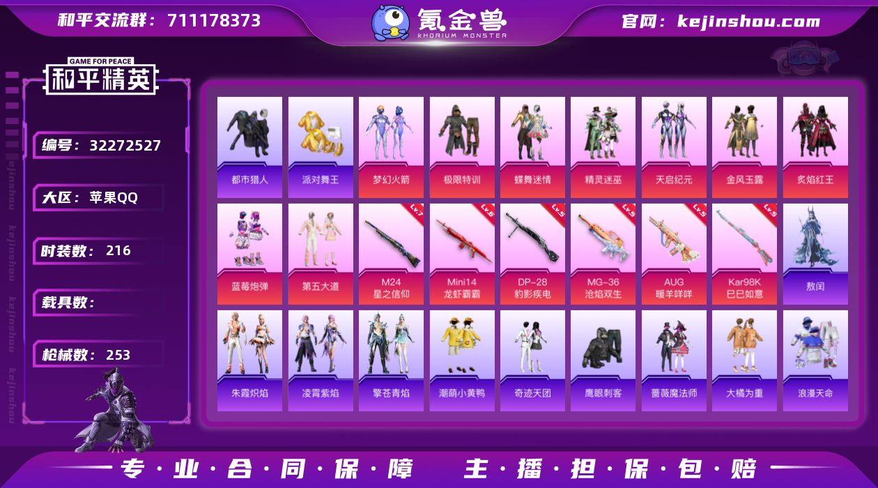 YZJ15744 可二次 苹果Q-4稀有11粉装8特效枪26热门215套装253枪皮 75328热力值 极品女身法素材号 地铁满天赋 200多天精英特权卡 新火箭少女 花仙子 小舞雪昙 第五大道 蓝莓炮弹 虹云熊熊 都市 金鞋 会说话的汤姆猫 权威小菠萝 红眼罩 奇迹天团 小黄鸭 敖闰 狂沙 天命 小鸟芋圆 TT战队服 7印记 历史卓越王牌11星 【4稀有】 都市猎人 浪漫天命 派对舞王 派对舞王(金靴子) 【11粉装】 梦幻火箭 虹云熊熊 蝶舞迷情 天启纪元 小舞雪昙 金风玉露 精灵迷巫 极限特训 第五大道 炙焰红王 蓝莓炮弹 【8特效枪】 M24-星之信仰 (7级) Mini14-龙虾霸霸 (6级) Kar98K-巳巳如意 (5级) MG-36-沧焰双生 (5级) DP-28-豹影疾电 (5级) AUG-暖羊咩咩 (5级) Mk14-福马献瑞 (5级) ACE32-萌骑漫游 (2级) 【26热门】 奇迹天团 龟仙人 星光纪元 雪山精英 潮萌小黄鸭 鹰眼刺客 蔷薇魔法师 奇迹天团 大橘为重 TT战队服 暗影哥特 赛罗奥特曼 团圆交子 瑞龙福将 水银刺客 狂沙舞者 漫步者 影双刃 静谧青瓷 破蛋小黄鸡 软嫩糖心蛋 黑色刀锋 极速红龙 M762-潮萌小黄鸭 M762-瑞龙福将 AUG-魔法学院 【1飞行器】 梦幻火箭飞行器 【4头盔】 银河战甲头盔 九霄头盔 梦幻火箭头盔 土曜战麒头盔 【7背包】 银河战甲...