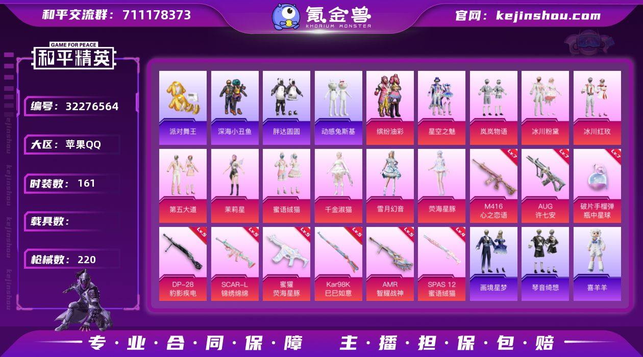 12粉9特 星空之魅 猪脸 第五大道 金鞋 糯粉咩咩 软软马卡龙 红熊茄茄 胖达圆圆 粉熊背包 3把满级 苹果 手Q-12粉装-9特效枪-0载具-3粉色飞行器-68539热力值-12王牌印记-161套装-220枪皮 【热门品类】:粉装-缤纷油彩,套装-浪漫天命,套装-派对舞王,套装-深海小丑鱼,套装-胖达圆圆,套装-动感兔斯基人偶服,套装-龟仙人,套装-潮萌小黄鸭,套装-糯粉咩咩,套装-软软马卡龙,套装-红熊茄茄 【粉色套装】:粉装-缤纷油彩,粉装-星空之魅,粉装-岚岚物语,粉装-冰川粉黛,粉装-冰川红玫,粉装-第五大道,角色-茉莉星,粉装-蜜语绒猫,角色-千金淑猫,粉装-雪月幻音,角色-荧海星豚,角色-罪夜之冕 【粉色枪皮等级】:SCAR-L-锦绣绵绵(五级),M416-心之恋语(七级),AUG-许七安(七级),蜜獾-荧海星豚(五级),Kar98K-巳巳如意(五级),AMR-智耀战神(五级),SPAS-12-蜜语绒猫(四级),DP-28-豹影疾电(五级),破片手榴弹-瓶中星球(七级) 【粉色枪皮】:SCAR-L-锦绣绵绵,M416-心之恋语,AUG-许七安,蜜獾-荧海星豚,Kar98K-巳巳如意,AMR-智耀战神,SPAS-12-蜜语绒猫,DP-28-豹影疾电,破片手榴弹-瓶中星球 【粉色飞行器】:炫彩糖果飞行器,镜光幻境飞行翼,暮色之舞飞行器 【粉色降...