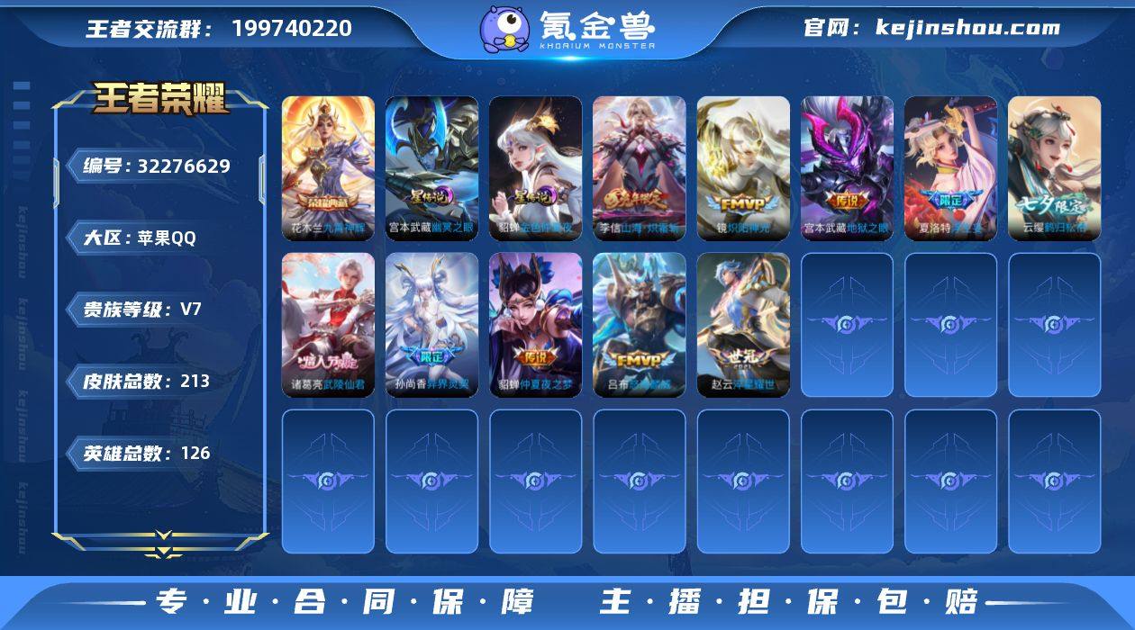 【4961】安卓Q-V7-最强王者段位-127英雄-267皮肤-1典藏皮肤-17传说-70史诗 【英雄全皮】:孙权全皮,影全皮 【荣耀典藏】:李白鸣剑曳影 【传说皮肤】:云缨神骥越千峰,后羿神树通天,云缨幻光神枪,桑启鸣野蒿,亚连落雪白狼,云缨鹤归松栖,马超无双飞将,王昭君乞巧织情,铠绛天战甲,镜炽阳神光,李信一念神魔,花木兰冠军飞将,后羿黄金射手座,貂蝉仲夏夜之梦,孙尚香末日机甲,宫本武藏地狱之眼,孙悟空地狱火 【限定皮肤】:大乔绒语心约,姜子牙天穹之誓,杨戬破阵退雄兵,狄仁杰阴阳师,赵云皇家上将,墨子神迹守卫,庄周高山流水,马可波罗山海玄木吟,狄仁杰魔术师,狄仁杰万华元夜,达摩沙漠行僧,项羽海滩派对,老夫子航海奇遇记,安琪拉魔法小厨娘,程咬金演武夺筹,韩信傲雪梅枪,兰陵王金庭之子,孙悟空美猴王,李元芳云中旅人,钟馗驱傩正仪,干将莫邪胡桃夹子,雅典娜黎明之约,鬼谷子五谷丰年,苏烈千军破阵,百里玄策原初追逐者,百里守约朱雀志,梦奇顽趣,沈梦溪大漠名商,裴擒虎李小龙,裴擒虎擒涛扼浪,上官婉儿梁祝,嫦娥拒霜思,西施玲珑珍味,鲁班大师探海日志,桑启海盐诗旅,戈娅驭风魔法,艾琳女武神,云缨鹤归松栖,阿古朵江河有灵,张良古...