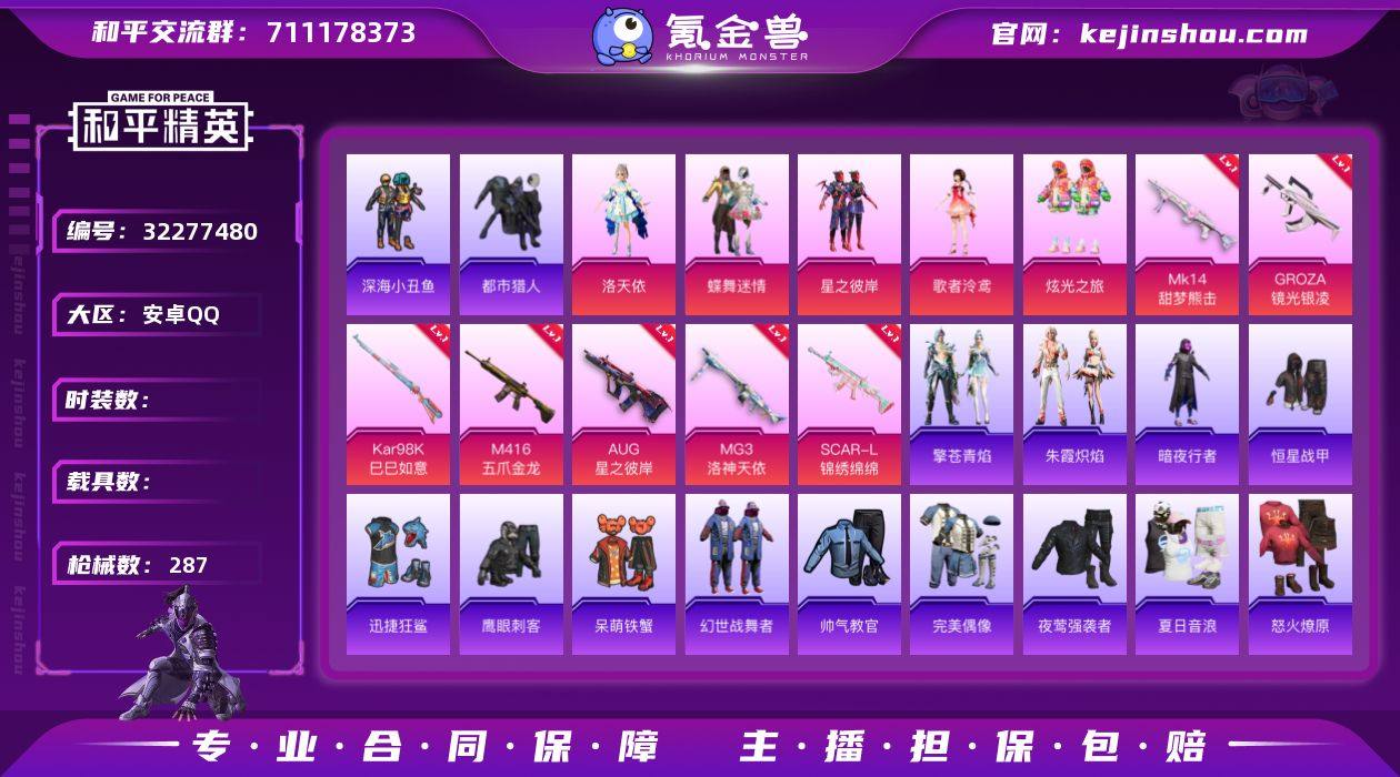套装/枪械10/装备333/战备217/王牌印记19/热力值88331/五级SCAR-L-锦绣绵绵/七级M416-五爪金龙/五级GROZA-镜光银凌/七级AUG-星之彼岸/五级AKS-74U-森灵之息/五级Kar98K-巳巳如意/五级Mk14-甜梦熊击/四级Mk14-福马献瑞/五级DP-28-豹影疾电/五级MG3-洛神天依/绝对防御上衣/浪漫天命/都市猎人/深海小丑鱼/小丑鱼/忍者信条/暗夜行者/旭日初心兜帽大衣/龟仙人/暗影哥特/粉红小猪/蝶舞迷情/星之彼岸/洛天依/歌者泠鸢/炫光之旅/SCAR-L-锦绣绵绵/M416-五爪金龙/GROZA-镜光银凌/AUG-星之彼岸/AKS-74U-森灵之息/Kar98K-巳巳如意/14-甜梦熊击/Mk14-福马献瑞/DP-28-豹影疾电/MG3-洛神天依/炫彩糖果飞行器/镜光幻境飞行翼/幻影战神降落伞/龙虾霸霸降落伞/星之彼岸降落伞/暗夜玫瑰降落伞/洛神天依降落伞/橘柚倾心降落伞/暖熊萌萌降落伞/千面幻镜降落伞/旋转彩虹降落伞/第五大道降落伞/未来歌姬降落伞/圣堂之誓降落伞/江南烟雨降落伞/临安公主降落伞/樱桃泡泡降落伞/异瞳寒姬降落伞/炫彩糖果降落伞/巳巳如意/套装-炫彩糖果/套装-马上来财/萝兰蝴蝶/糖糖葫芦/青团波波/粉恋花/紫幽梦/蓝冰羽/角色-瑰梦爱神/朱霞炽焰/套装-凌霄紫焰/擎苍青焰/角色-绯色魅影/套装-书海巡游/套装-画境星梦/套装-琴...