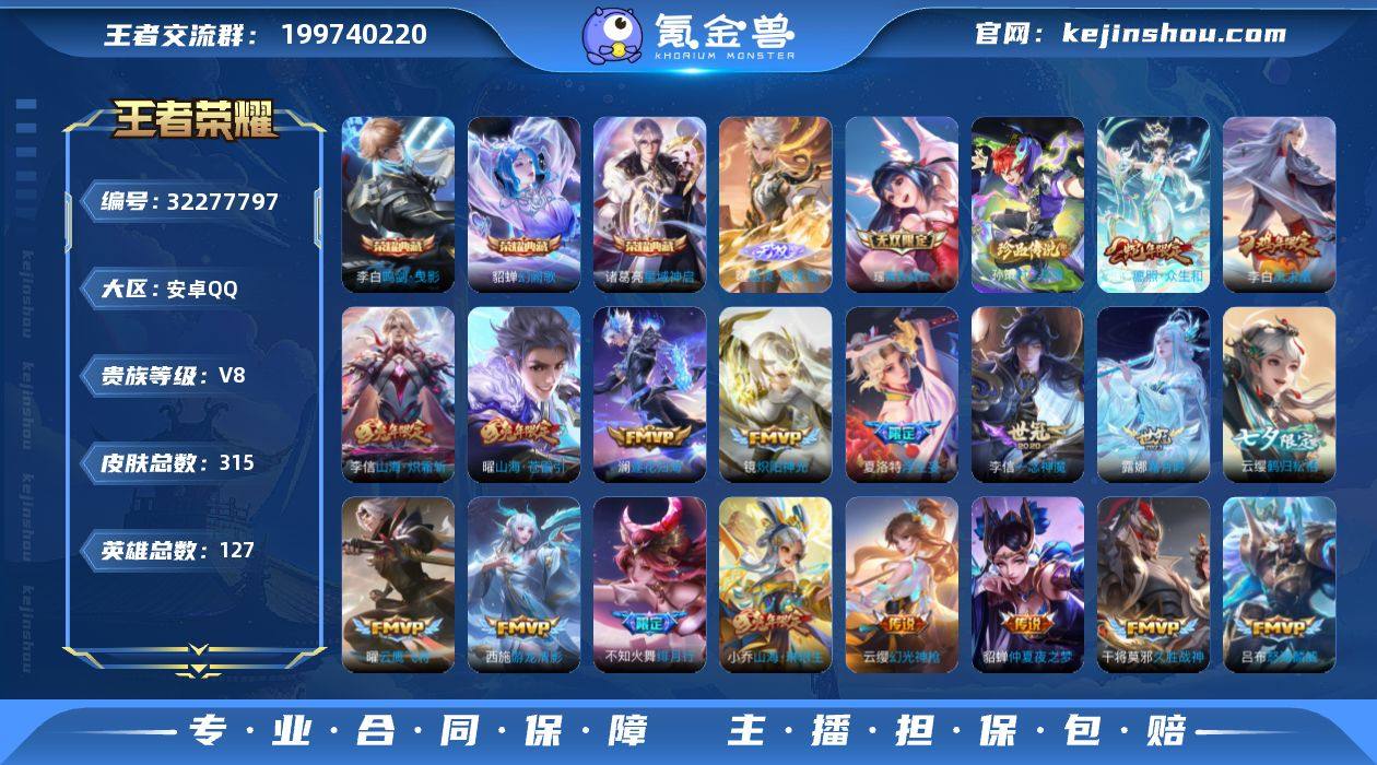 【aswz1672】安卓Q-V8-永恒钻石V段位-127英雄-315皮肤-3典藏皮肤-2无双-1珍品传说-26传说-92史诗 【英雄全皮】:夏洛特全皮,影全皮 【荣耀典藏】:李白鸣剑曳影,诸葛亮星域神启,貂蝉幻阙歌 【无双皮肤】:曜器灵螭龙剑,瑶真我赫兹 【珍品传说】:孙策时之奇旅 【传说皮肤】:妲己愿照众生和,云缨幻光神枪,澜逐花归海,露娜霜月吟,云缨鹤归松栖,东皇太一灼幽烈阳,夏洛特浮生妄,伽罗炽翼辉光,小乔山海琳琅生,曜山海苍雷引,李信山海炽霜斩,吕布怒海麟威,不知火舞绯月行,孙尚香音你闪耀,露娜启示之音,西施游龙清影,镜炽阳神光,虞姬启明星使,曜云鹰飞将,李信一念神魔,貂蝉猫影幻舞,张良黄金白羊座,干将莫邪久胜战神,虞姬云霓雀翎,貂蝉仲夏夜之梦,李白凤求凰 【限定皮肤】:狄仁杰阴阳师,虞姬凯尔特女王,小乔山海琳琅生,赵云皇家上将,墨子神迹守卫,庄周蜃楼王,庄周云端筑梦师,庄周高山流水,孙膑妖精王,孙膑天狼运算者,孙膑寅虎展翼,扁鹊炼金王,扁鹊奇幻香踪,芈月幻夜卜梦,典韦穷奇,马可波罗山海玄木吟,狄仁杰魔术师,狄仁杰万华元夜,达摩星际陆战队,达摩沙漠行僧,项羽海滩派对,老夫子醍醐杖,老夫子航海奇遇记,程咬金演武夺筹,露...
