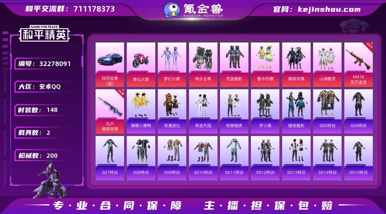 【AZH1973】安卓 手Q【旋转彩虹千金淑猫 满级青春物语SCAR-L满级千金淑猫DP-28 3载具】9粉装-5特效枪-3载具-3粉色飞行器-69187热力值-12王牌印记-155套装-209枪皮 【热门品类】:套装-浪漫天命,套装-小丑鱼,套装-奇异狩猎者,套装-粉红小猪 【粉色套装】:粉装-极限特训,粉装-金曜白虎,粉装-庄周梦蝶,角色-复仇流浪者,粉装-鸾凤武仙,粉装-旋转彩虹,粉装-光明术士,角色-千金淑猫,粉装-幻彩电音 【粉色枪皮等级】:SCAR-L-青春物语(七级),AUG-暖羊咩咩(五级),Kar98K-巳巳如意(五级),DP-28-千金淑猫(七级),DP-28-豹影疾电(五级) 【粉色载具】:玛莎拉蒂Quattroporte(夜幕蓝),玛莎拉蒂Grecale(薄荷绿),焰龙咆哮 【粉色枪皮】:SCAR-L-青春物语,AUG-暖羊咩咩,Kar98K-巳巳如意,DP-28-千金淑猫,DP-28-豹影疾电 【粉色飞行器】:梦幻火箭飞行器,星空武士飞行器 【粉色降落伞】:幻影战神降落伞,梦幻火箭降落伞,炫紫旋律降落伞,四圣焕新降落伞,星之彼岸降落伞,怪笑疯兔降落伞,垂柳戏鸭降落伞,太空嘟嘟降落伞,彩虹甜喵降落伞,旋转彩虹降落伞,第五大道降落伞,纯梦嫁纱降落伞,圣堂之誓降落伞,精灵梦叶罗丽降落伞,千金淑猫降落伞 【稀有套装】:套装-巳巳如意,套装-糖糖葫芦,套装-青团波波,角色-摩登魅猫,套装-燕燕于飞,套装-鱼渊荷华,角色-海琴烟,套装-萌萌史莱姆,套装-粉恋花,套装-紫幽梦,套装-蓝冰羽,套装-星影赞美诗,套装-彩虹兔,套装-云朵鹅,套装-雪绒豹,套装-蜜露汐语,套装-炫彩糖果 【稀有枪皮】:AKM-墨染幽兰,AKM-夜灯,AKM-彩虹符号,AKM-灼热熔岩,AKM-环太平洋,AKM-破晓战魂,AKM-萌趣颜团子,AKM-星月云朵,M16A4-幻世战舞者,M16A4-甜心亚梦,M16A4-魔法学院,M16A4-千金淑猫,SCAR-L-夜灯,SCAR-L-炫彩节奏,SCAR-L-玉兔迎春,SCAR-L-红色方程式,SCA...