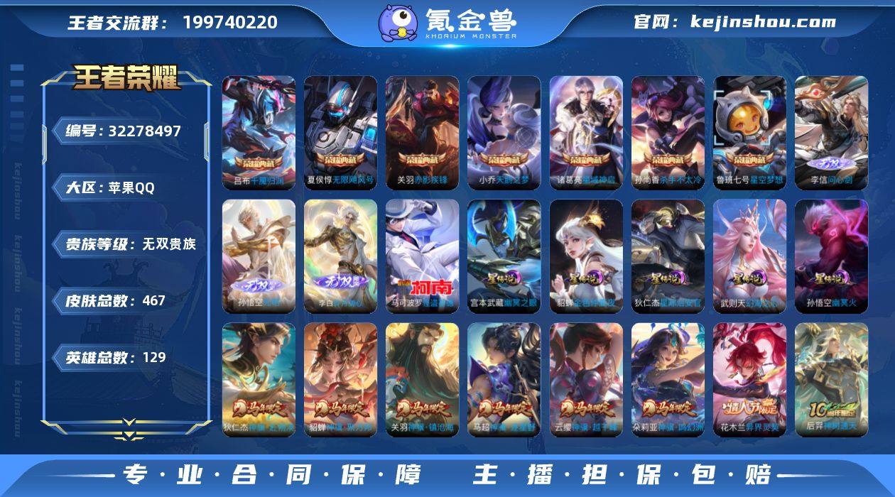 【高性价比·无双V10·7.8W流光积分·满马年限定·8典藏·3无双·马可怪盗基德·6星传说·4天幕·276个性戳戳·天骥开鸿天幕·可二次】YXw18695-苹果Q-129英雄-467皮肤-20王者印记-300铭文-贵族积分31w【贵族11】【8典藏·3无双·1珍品·6星传说·48传说·4天幕·24按键·276个性戳戳】【因赛季更新游戏段付以上号为准!】 【英雄全皮】:孙权全皮,橘右京全皮,鬼谷子全皮,梦奇全皮,盾山全皮,猪八戒全皮,敖隐全皮,蒙恬全皮,金蝉全皮,空空儿全皮,影全皮,海诺全皮 【荣耀典藏】:武则天英雄,夏侯惇无限飓风号,小乔天鹅之梦,孙尚香杀手不太冷,鲁班七号星空梦想,诸葛亮星域神启,关羽赤影疾锋,吕布千魇归渊 【无双皮肤】:李信问心剑,孙悟空无相,李白碎月剑心 【珍品传说】:马可波罗怪盗基德 【星元皮肤】:孙悟空幽冥火,貂蝉金色仲夏夜,宫本武藏幽冥之眼,孙策漫霞共誓,狄仁杰星际治安官,武则天幻海之心 【天幕】:鲲天幕,天骥开鸿天幕,花朝如约天幕,电音狂想天幕 【传说皮肤】:云缨神骥越千峰,关羽神骥镇沧海,朵莉亚神骥鸣幻洲,狄仁杰神骥赴朔漠,貂蝉神骥聚万邦,马超神骥逐星野,花木兰异界灵契,后羿神树通天,澜愿照九州拓,云缨幻光神枪,嬴政玄雷天君,桑启鸣...