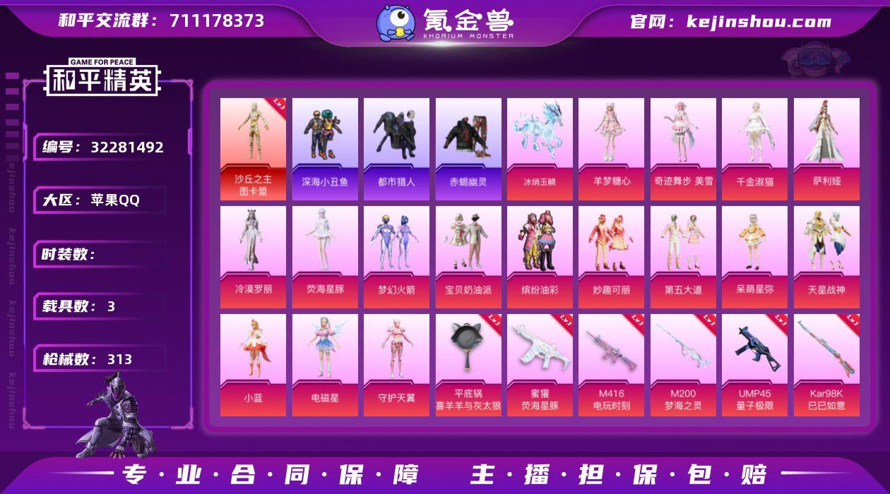 【1级艾丽娅 3级图卡盟 赤蝎 都市 新101 猪妹 哥特 满地铁天赋】c25209-【可二次】【因赛季更新游戏段付以上号为准!】 苹果Q-2红装4稀有3载具16粉装7特效枪20热门255套装313枪皮 12印记 历史卓越王牌15星 【2红装】 暮色玫影-艾丽娅 (1级) 沙丘之主-图卡盟 (3级) 【4稀有】 赤蝎幽灵 AKM-缤纷海域 都市猎人 浪漫天命 【3载具】 暮色幽蹄 仰望U7先锋版(阿盖尔紫) 冰绡玉鳞 【16粉装】 梦幻火箭 小蓝 萨利娅 奇迹舞步美雪 电磁星 宝贝奶油派 千金淑猫 荧海星豚 天星战神 冷漠罗丽 守护天翼 羊梦糖心 呆萌星弥 妙趣可丽 缤纷油彩 第五大道 【9特效枪】 M416-电玩时刻 (5级) Kar98K-巳巳如意 (5级) DP-28-豹影疾电 (5级) M200-梦海之灵 (1级) 蜜獾-荧海星豚 (7级) UMP45-量子极限 (5级) 平底锅-喜羊羊与灰太狼 (2级)Mk14-福马献瑞(1级) AKM-暮色玫影(3级) 【20热门】 Mark.06 龟仙人 雪山精英 呆萌铁蟹 鹰眼刺客 兔兔白日梦 迅捷狂鲨 深海小丑鱼 浪漫波比 暗影哥特 团圆交子 瑞龙福将 水银刺客 漫步者 抹茶蜜豆 破蛋小黄鸡 风华少年志 极速红龙 弄潮海豚 M762-瑞龙福将 【2飞行器】 梦幻火箭飞行器 幻海精灵飞行器 【3头盔】 梦幻火箭头盔 甜心宝贝头盔 深海小丑鱼头...