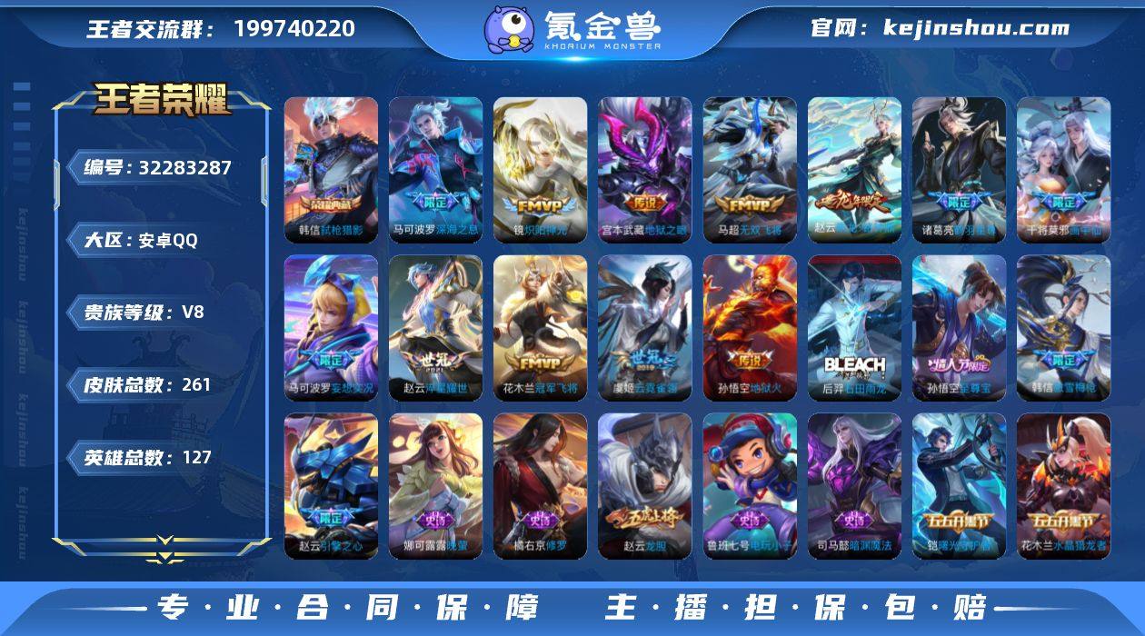 [17405737]V8 1典藏 1珍品传说 18传说 127英雄 261皮肤 可修改实名 男号 【英雄全皮】蚩奼全皮,影全皮,大禹全皮 【稀有英雄】敖隐(小龙人),大司命,韩信(韩跳跳),夏洛特(夏师傅),艾琳,橘右京(橘子),娜可露露(鸟人),不知火舞,赵云,金蝉(唐僧),戈娅 【荣耀水晶】弑枪猎影(韩信典藏) 【珍品传说】怪盗基德 【传说皮】乘龙·铭钟鼎(赵云年限),地狱火,地狱之眼,末日机甲-孙尚香(绿蚂蚱),云霓雀翎,淬星耀世,冠军飞将,炽阳神光,无双飞将,画中仙,鹤羽星尊,妄想实况 【珍宝阁皮】妄想食味,女武神 【赛季/战令皮】噬灭天穹(s37),古海寻踪(s33),星界游侠,海盐诗旅(s30),擒涛扼浪(s31),潮玩骑兵,探海日志(s32),驭风魔法,玲珑珍味,顽趣-梦奇,剑破天穹(s35),天穹祈灯(s34),青焰无极,苍威无极,天穹之誓(s36),暖冬·兔眠,演武夺筹(s23),驱傩正仪(s24),千军破阵(s25),圣弓游侠,真爱魔法,火炮绅士,沙漠行僧(s26),幻夜卜梦,吟游魔法,夜都怪侠,金庭之子(s27),电玩高手(电玩铁子),午后时光,大漠名商(s28),云中旅人(s29),超时空战士-钟无艳,落雪兰心 【史诗皮】星界战将,百相守梦-百里守约,线条小狗-周瑜,九幽镇关,涂山容容,石田雨龙,苍穹之光,电玩小子(小书包),黄金分割率,特工魅影,千年之狐,蒙恬荣光...
