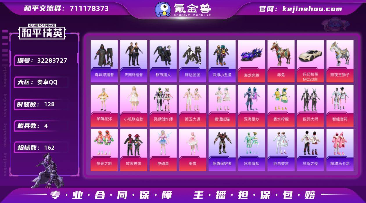 【2红装5级欧若拉 10粉装8特效枪3载具可秒换绑】 安卓Q区-118539热力值-11印记-247套装-334枪皮 【2红装】 镜域双华-欧若拉(5级) 墨龙九天-敖渊(1级)【3载具】 合金龙骨绿色 特斯拉3白色 疾风龙骑【1稀有】 Mark.06【10粉装】 梦幻火箭 洛天依 角色-美雪 角色-严莉莉 暗夜玫瑰 薄荷物语 未来歌姬 星穹咏叹调 角色-荧海星豚 角色-奇迹舞步 贝贝【8特效枪】 SCAR-L-锦绣绵绵(5级) MG3-洛神天依(4级) M24-镜域双华(3级) M416-墨龙九天(3级) AKS-74U-星穹咏叹调(4级) Kar98K-巳巳如意(5级) DP-28-豹影疾电(5级) SVD-月影灵韵(2级)【63热门】 青龙圣者 GROZA-异彩先驱 AUG-怪笑疯兔 M762-镭射皇者 M762-暗夜鎏金 众神之王 长空猛禽 异彩先驱 虚音幻奏 甜心亚梦 甜蜜熊情侣 牛气冲天 霓虹街区 霓虹极客 妙红点点 懵萌河马 兔兔白日梦 浪漫天命 诡面顽熊 机械英豪 破蛋小黄鸡 大橘为重 浪漫波比 军刀雅典娜 极速红龙 醒狮腾龙 团圆交子 瑞龙福将 白色伏地魔 SS9特训 SS27特训 SS26特训 SS25特训 SS24特训 SS23特训 SS22特训 SS10特训 Mk47-洛神天依 Mini14-梦幻火箭 Mark.06 M762-乌木金纹 Kar98K-王子的夏天 AWM-不夜海上花 GROZA-乌木金纹 SCAR-L-玉兔迎春 GROZA-田园牧歌 GROZA-恐龙拽拽 M762-天降萌叽 M762-彩虹符号 Mk47-乌木金纹 SKS-糯团青竹 Mini14-旋转彩虹 UZI-娇憨猪猪 M416-夜灯 UMP45-炫光之旅 M249-彩虹符号 MG3-幻世战舞者 AKM-虎虎生威 AKM-星之彼岸 万圣娃娃【8飞行器】 光之冒险尾迹 粉色滑翔尾迹 勇闯险境飞行服 镜域双华-灵镜之阶 火焰蝠人飞行服 空岛之星尾迹 龙翔九天飞行器 祥瑞锦鲤飞行器 营地ID:725035563