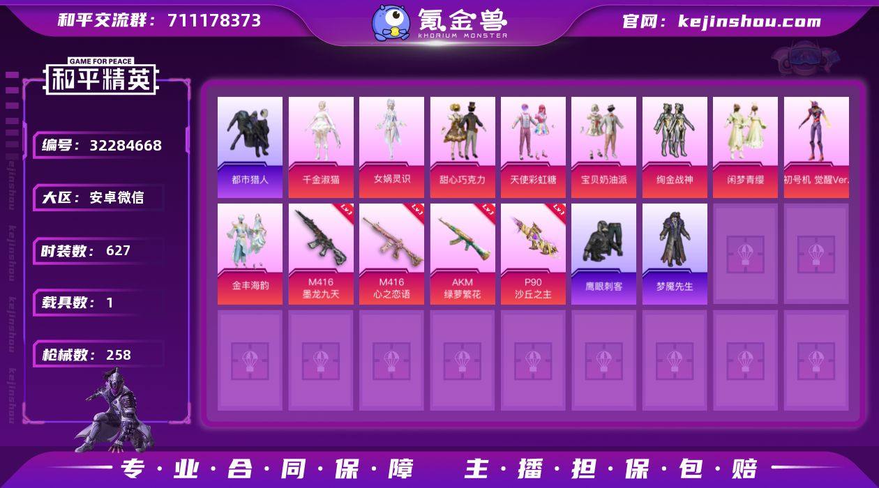 【稀有枪皮】AMR-智耀战神,12-雪月幻音,MG3-辉羽雀灵,14-甜梦熊击,Vector-最终圣卫者,M416墨龙九天,DP-28-豹影疾电,Kar98K-巳巳如意,M416心之恋语,AKM绿萝繁花,P90沙丘之主