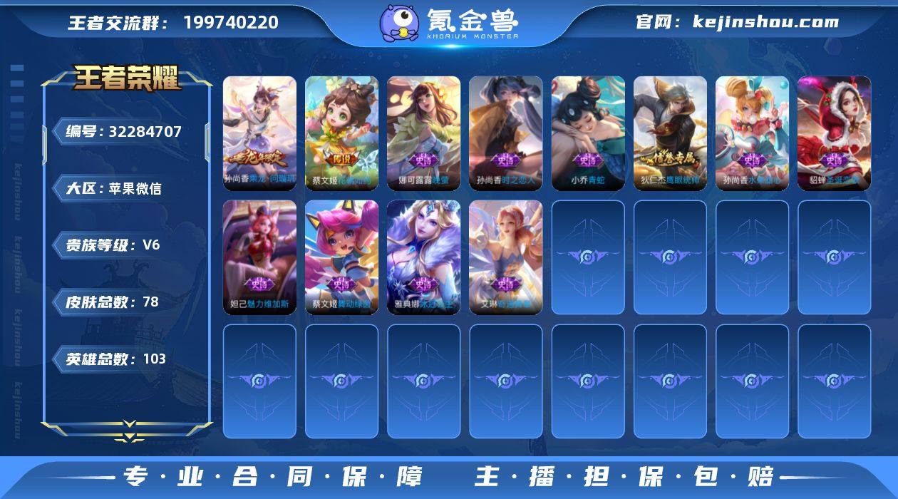 [17513035]V6 3传说 103英雄 78皮肤 可修改实名 女号