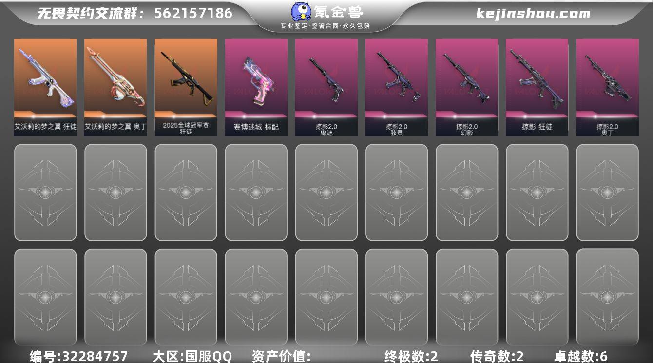 【qyz9555】可二次 玩够能回血 掠夺2.0 艾沃莉狂徒 qyz9555 【近战武器】:近战武器-影钩 【狂徒】:狂徒-2025全球冠军赛,狂徒-艾沃莉的梦之翼,狂徒-掠影 【幻影】:幻影-掠影//2.0 【戍卫】:戍卫-彩虹魔力小白马 【奥丁】:奥丁-艾沃莉的梦之翼,奥丁-掠影//2.0 【骇灵】:骇灵-掠影//2.0 【标配】:标配-赛博迷城 【鬼魅】:鬼魅-掠影//2.0 【卡面】:无畏契约GO!第一卷:零 卡面,代号红色 卡面,新兵报到 卡面,V契约 卡面,无畏契约 卡面 【喷漆】:买装还是存钱 喷漆,胜利属于无畏契约 喷漆,GLHF 喷漆,无畏契约 喷漆 【挂饰】:天外飞客 挂饰,海豹的认可 挂饰,无畏契约 纪念币 挂饰