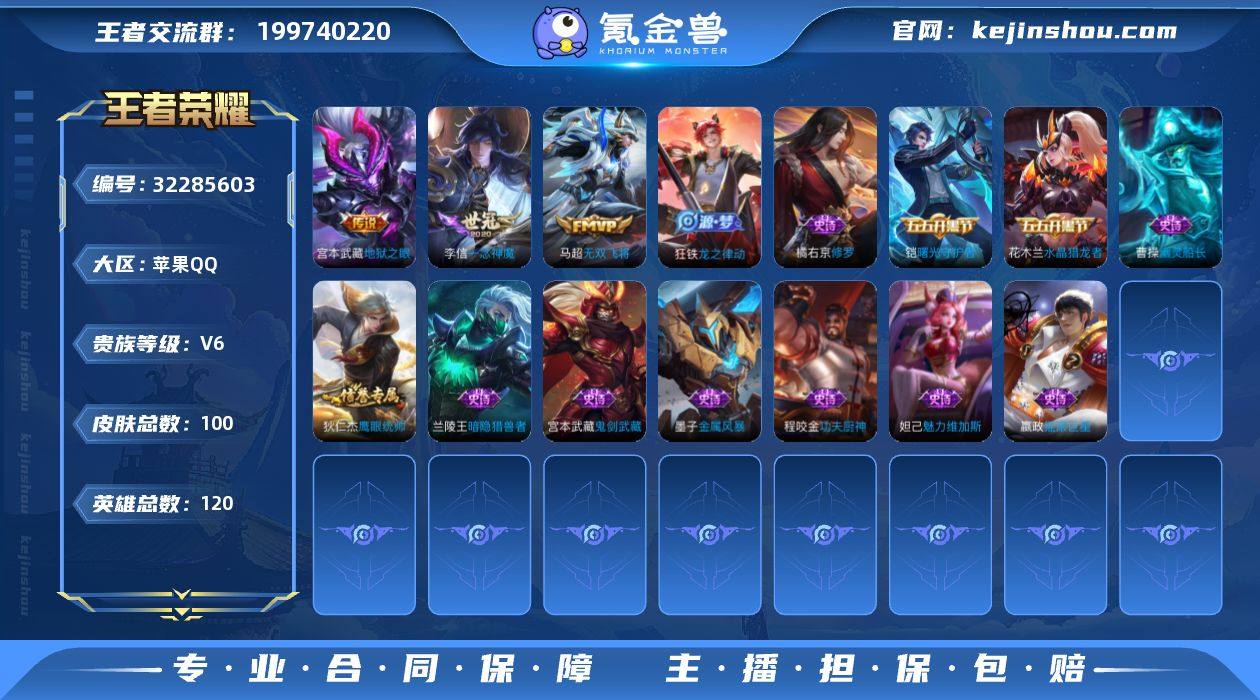 V6 4传说 120英雄 100皮肤 可修改实名 男号