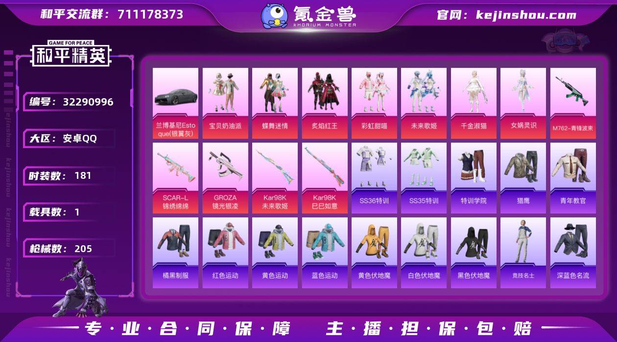 实名:可二次实名 是否支持人脸包赔:支持 粉装数量:9 特效枪数量:6 载具数:1 时装数:595 枪械数:240 羊梦糖心,宝贝奶油派,垂柳戏鸭,创世·救赎,呆萌星弥,幻彩电音,天使彩虹糖,桃粉嫣然,闲梦青缨 九级AUG-星梦奇缘,五级蜜獾-异瞳寒姬,五级DP-28-豹影疾电,五级MG-36-沧焰双生,五级Kar98K-巳巳如意,四级AUG-许七安 星梦玉骢 狙击之神,马上有钱,福马献瑞,红釉青花,SS37特训,雨过天青,青翼流星,雪国风尚,SS36特训,炫彩糖果,绯色魅影,萌鸡速递,风迹短诗,SS35特训,午间小调,元气之梦,薄荷星砂,狂鲨锋刃,凌霄紫焰,擎苍青焰,SS34特训套装,游乐,朱霞炽焰,8号机,冰川特警,缤纷果语,北国孤狼,滨海厨神,白色伏地魔,春光漫游,彩虹兔,长空猛禽,超能勇士,纯真浪花,达芬奇,顶瓜瓜,蝶变,大橘大利,呆萌铁蟹,都市漫游者,短笛,蝶吟花词,飞驰魅影,粉红小猪,疯狂小兔子,粉恋花,瑰梦爱神,龟仙人,混沌火种,海岛探路者,湖蓝色名流,黑色伏地魔,黄色名流,黄色运动,幻世战舞者,幻羽潜行,晶辉守护,酒红色名流,娇憨猪猪,竞技达人朋克,竞技名士,竞技勇士朋克,极速光影,街舞之王,空岛之星,快闪甜心,蓝冰羽,蓝彩潮人,龙魂突击队,猎鹰,萝兰蝴蝶,莱茵河畔,恋语绒绒,Mark.06,漫步者,猛禽,魅力单车,果汁能量,麻辣教官,蜜露汐语,萌趣咩咩,卖崽青蛙,弄潮海豚,霓虹街区,怒火燎原,霓虹热舞,柠萌假日,牛气冲天,破蛋小黄鸡,青春校园,情公主,绮丽涂鸦,青年教官,俏皮奶喵,云朵鹅,热情海星,深蓝色名流,圣穹绘梦,SS19特训,SS20特训,SS21特训,SS23特训,SS26特训,SS27特训,SS28特训,SS29特训,SS31特训套装,SS32特训套装,SS33特训套装,SS6特训,SS7特训,SS8特训,巳巳如意,探宝勇士,甜蜜告白,特殊使命,特训学院,团圆交子,特战装甲,王牌教练,小丑鱼,迅捷狂鲨,炫蓝之夏,星梦畅游,小鸟芋圆,雪绒豹,旭日情侣,星影赞美诗,跃动心情,耀粉歌者,音速流光,玉兔迎春,焰鹰斗篷,鱼渊荷华,燕燕于飞,异域银装,战地菁英,紫幽梦 炫彩糖果飞行器,提桶跑路飞行器,太空嘟嘟飞行器,天之羽翼飞行器,祥瑞锦鲤飞行器,夜幕颂歌飞行器,炫彩糖果降落伞,异瞳寒姬降落伞,喜羊羊与灰太狼降落伞,彩虹甜喵降落伞,垂柳戏鸭降落伞,辉羽雀灵降落伞,精灵梦叶罗丽降落伞,江南烟雨降落伞,翩跹演武降落伞,齐天大圣降落伞,忍者神龟降落伞,沙丘之主降落伞,甜心宝贝降落伞,星梦奇缘降落伞,星穹咏叹调降落伞,荧海星豚降落伞,智耀战神降落伞 卖家说:有二次,可转区,八位QQ号,当前赛季已开,1688动态背景