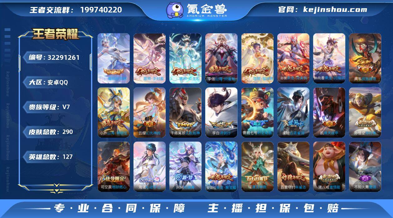 【WZ181221】安卓Q-V0-最强王者段位-126英雄-233皮肤-1典藏皮肤-9传说-60史诗【荣耀典藏】:李白鸣剑曳影【传说皮肤】:澜愿照九州拓,云缨幻光神枪,桑启鸣野蒿,露娜霜月吟,诸葛亮时雨天司,镜炽阳神光,曜云鹰飞将,干将莫邪久胜战神,达摩黄金狮子座【限定皮肤】:白起狰,蒙犽顽岩魄,大乔绒语心约,姜子牙天穹之誓,狄仁杰阴阳师,虞姬凯尔特女王,赵云皇家上将,嬴政优雅恋人,孙尚香蔷薇恋人,庄周蜃楼王,孙膑妖精王,扁鹊炼金王,扁鹊奇幻香踪,芈月重明,吕布御风骁将,夏侯惇朔风刀,甄姬游园惊梦,曹操烛龙,典韦穷奇,马可波罗山海玄木吟,狄仁杰魔术师,狄仁杰万华元夜,达摩沙漠行僧,项羽海滩派对,老夫子醍醐杖,露娜一生所爱,韩信傲雪梅枪,兰陵王金庭之子,亚瑟狮心王,牛魔御旌,后羿如梦令,李元芳云中旅人,虞姬霸王别姬,钟馗驱傩正仪,杨玉环遇见飞天,杨戬潮玩骑兵,雅典娜黎明之约,蔡文姬繁星吟游,太乙真人饕餮,鬼谷子原初探秘者,诸葛亮时雨天司,苏烈千军破阵,百里玄策原初追逐者,弈星混沌棋,梦奇顽趣,沈梦溪大漠名商,明世隐疑决卦,裴擒虎李小龙,裴擒虎擒涛扼浪,狂铁御狮,米莱狄御霄,瑶山海碧波行,云中君纤云弄巧,云中君时之祈...