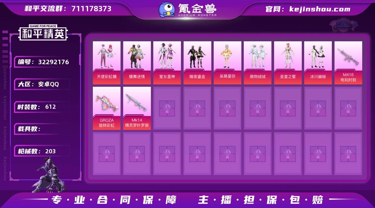 安卓 手Q-5粉装-5特效枪-2载具-2粉色飞行器-47966热力值-9王牌印记-110套装-150枪皮 【热门品类】:角色-军刀雅典娜,套装-龟仙人 【粉色套装】:粉装-星之彼岸,粉装-鸾凤武仙,粉装-纯珍童话,角色-紫钛骑兵,角色-圣堂之誓 【粉色枪皮等级】:AKM-幻海仙踪(四级),SCAR-L-纯梦嫁纱(七级),Kar98K-巳巳如意(五级),AMR-智耀战神(七级),DP-28-豹影疾电(五级) 【粉色载具】:兰博基尼Estoque(银翼灰),双人摩托-梦幻火箭 【粉色枪皮】:AKM-幻海仙踪,SCAR-L-纯梦嫁纱,Kar98K-巳巳如意,AMR-智耀战神,DP-28-豹影疾电 【粉色飞行器】:梦幻火箭飞行器,终晖之翼飞行器 【粉色降落伞】:梦幻火箭降落伞,垂柳戏鸭降落伞,翩跹演武降落伞,圣域龙灵降落伞,智耀战神降落伞,星穹咏叹调降落伞,幻彩电音降落伞 【稀有套装】:套装-龟仙人,套装-巳巳如意,套装-雪国风尚,套装-粉恋花,套装-紫幽梦,套装-蓝冰羽,套装-星渊小夜曲,角色-乐音,套装-书海巡游,套装-画境星梦,套装-琴音绮想 【稀有枪皮】:AKM-彩虹符号,AKM-星兔领航员,AKM-生命誓言,AKM-破晓战魂,AKM-龙的传人,M16A4-蓝色火焰,SCAR-L-夜灯,SCAR-L-玉兔迎春,SCAR-L-红色方程式,M416-糯团青竹,M416-蓝色火焰,GROZA-懵萌河马,GROZA-田园牧歌,AUG-天降萌叽,AUG-纯梦嫁纱,AUG-耀粉歌者,QBZ-洛神天依,M762-天降萌叽,M762-瑞龙福将,M762-第五大道,Mk47-妙红点点,Mk47-洛神天依,G36C-懵萌河马,G36C-星穹咏叹调,AC-VAL-天降萌叽,蜜獾-垂柳戏鸭,蜜獾-天降萌叽,蜜獾-娇憨猪猪,ACE32-画境星梦,UZI-啾咪啾咪,UZI-娇憨猪猪,UMP45-仲夏莫吉托,UMP45-生命誓言,UMP45-蓝色火焰,Vector-生命誓言,Vector-田园牧歌,汤姆逊-天降萌叽,汤姆逊-耀粉歌者,MP5K-画境星梦,Kar98K-星穹咏叹调,M24-影袭,AWM-垂柳戏鸭,SKS-炫彩节奏...