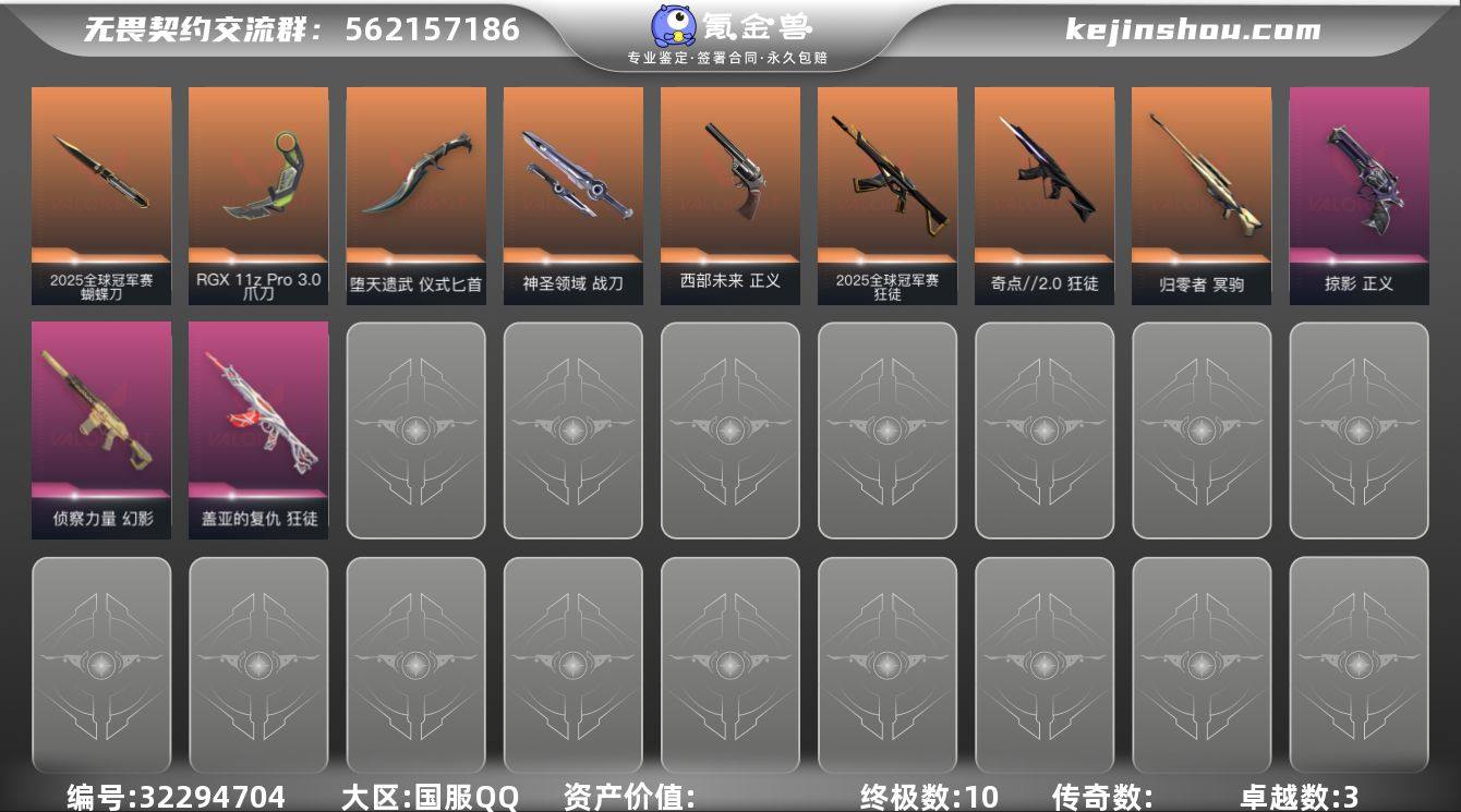 【qyz9318】三棱军刺+25冠军套+盖亚紫金掠夺ak+暗夜幻影+莲华大狙 精品皮肤号 段位黄金 qyz9318 【近战武器】:近战武器-2025全球冠军赛 蝴蝶刀,近战武器-影钩,近战武器-超时空卫队 三棱军刺,近战武器-落英飞旋,近战武器-诡秘蛇影 军刀 【狂徒】:狂徒-2025全球冠军赛,狂徒-虚空遗器,狂徒-掠影,狂徒-盖亚的复仇,狂徒-日冕雄师,狂徒-紫阙金琅,狂徒-诡秘蛇影 【幻影】:幻影-黯夜怪谈,幻影-神中神罚,幻影-末日之翼 【戍卫】:戍卫-折光棱晶 【冥驹】:冥驹-千灵华绽 【飞将】:飞将-末日之翼 【莽侠】:莽侠-RGX 11z Pro//3.0,莽侠-诡秘蛇影 【奥丁】:奥丁-末日之翼 【判官】:判官-诡秘蛇影 【骇灵】:骇灵-无限竞技 【蜂刺】:蜂刺-折光棱晶 【标配】:标配-折光棱晶 【鬼魅】:鬼魅-诡秘蛇影 【短炮】:短炮-末日之翼 【卡面】:欢迎来到底城 卡面,南瓜盛典 卡面,Clutch 卡面,无畏契约GO!第一卷:芮娜 卡面,清除名单 卡面,无畏契约GO!第一卷:零 卡面,暗枪 卡面,代号红色 卡面,新兵报到 卡面,V契约 卡面,无畏契约 卡面 【喷漆】:啊? 喷漆,都算到了 喷漆,熊抱 喷漆,高丽风情小虎 喷漆,超能偶像 喷漆,皮蛋萌舞 喷漆,双人比心 喷漆,买装还是存钱 喷漆,蕊形灯 喷漆,放下武器 喷漆,自信满满 喷漆,胜利属于无畏契约 喷漆,GLHF 喷漆,无畏契约 喷漆 【挂饰】:第九季//第三幕 纪念币 挂饰,模拟赫兹 挂饰,糖葫芦 挂饰,天外飞客 挂饰,无畏契约 纪念币 挂饰