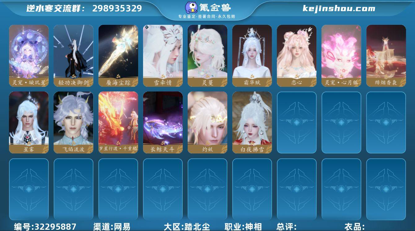 网易支付状态:可注销 换绑冷却:无冷却 职业:沧澜 总评:1384323 衣品:260855 白夜拂雪 笙月灯影,胡彩漠琅,金缕漠歌,鸿昭锦唐,昙月花恋,雾都往事,糖云蜜杏,雾蓝星瞳,鹊羽织霞,烟雨裁春,沐霞映姝,榴枝拂槛,炽烈狂想,皎华望月,明日香款战斗服,甜梦晴海,破曙征潮,金筹曜夜,逸夏浮澜,雪团云绒,楚念良时,霁晴云间,羽信絮梦,潇湘黛影,烹椒听雀,娇俏毒物,魁星踢斗,鹅糯多姿,幽蝶魅影,幻音星缘,窃月影姬,暗蔷魅影,云山鹤影,音律织光,碎玉怜姻,追鱼思渊,雨落空山,云梦萤星,司命秋罗,焕曜旋煌,海月漫歌,心韵追声,山青见雨,墨山烟霏,鸿福昭运,丹橘织雪,岁鳞衔新,天籁闻歌,朔雪从风,逍遥千风,瑰梦千结,湖岚镜心,白夜俘获,荒朽遗风,绯月狼舞,绒粉美梦,仙桃折枝,温语愈心,云汉逢夕,春日序曲,绛英流芳,芳汀花影,星迹梦语,川峦游墨,悬蛛结心,狸奴颂锦,平野星罗,玉蕊含梅,霜天凝露,金翎琼枝,晴岚蜃海,幽兰沐月,纯白心绪,幽蝶眠花,凤吟振羽,灼金喵影,律动音阶,跃动心芒,闻鹤九皋,筵舞云歌,晶梦绮舞,恣行无拘,花萼繁舞,雪月凌风,灵语星彩,侠影流霜,呱容月貌,丹枫秋意,四海无拘,烟黛粉墨,茸客衔春,竹间萌客,糯粽缠青,风动荷衣,南风知暑,露染芙蕖,锦尾芊芊,宅宅乐,苏韵流芳,鲤跃今宵,开阳执戈,贪狼摄星,混天焚莲,衣香鬓影,逆鳞濯月,金祷昼梦,青林雀舞,灵兔献瑞,鳞骨逢幽,玄喵夜行,斗墨金枢,白尘游昼,星宫遐音,星蝶离火,斗战凌空,烽火浮生,赤狐魅语,天纵恒尊,林泽清瑶,白灵雪魅,灵鹿瑶羽,墨隐千秋,迷迭萧疏,青溪春信,无常白袍,辟邪帝姬,梨园素贞,鳞衫丽织,惊鸿舞衣,千山如织,聆萤语,霸揽长霄,似水幽华,鸢染烟纱,天狼北顾,白露惑心,银角辟幽,枫华九霄,空林悠萌,春梢剪锦,花朝春信,如意瑞喜 糖趣解忧,骋风叱焰,贺岁喜狮,撒手没