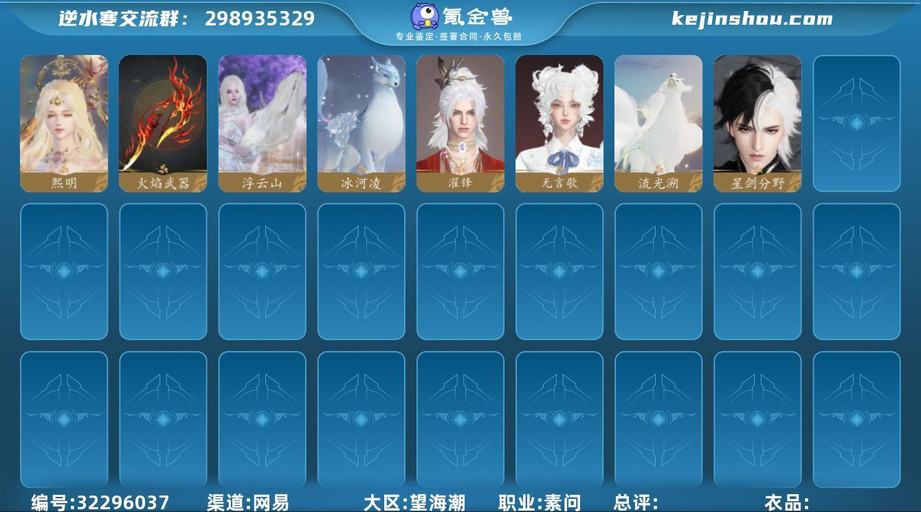 【区服】 白夜拂雪 【战力值】 93.24 【职业】 素问 【衣品值】 161795 【国色值】 43620 【已用天赏石】 13 【天霓染数量】 1 【充值称号】 把酒临风 【累计充值】 13516元 【剩余赠礼额度】 20364纹玉 【天霓染】 鲸羽*1 【灵韵内功】 御千山, 玄黄烈辉, 楚狂歌, 望惊川 【副本外观】 星剑分野 【天赏外观】 无言歌, 濯锋, 熙明, 浮云山, 火焰武器 【天赏祥瑞】 冰河凌, 流光溯 【祥瑞坐骑】 金冠鼠鼠, 纵风甲车·玄, 呆宝, 粉黛娇, 布丁, 幻琉晶, 狂霸天, 风行·世间情, 风行·万灯明, 星河转·赤夜, 骋风叱焰, 云螭·烹鲜炊黍, 龙衔瑞焰, 伯力, 咩郎, 瓜皮, 轩辕, 墨流云·朱红, 奔虹赤, 彩虹小马, 木小马, 空山闲, 银砂素波, 犬威哮月·沧, 犬威哮月·焰, 玉霄飞练, 绒绒夜, 隐云涧, 逍遥游 【商城外观】 夜锋漫迹, 甜宙漫游, 晴岸涛吟, 蕉雨夜澜, 玄喵夜行, 羽信絮梦, 金粉绮梦, 白凤御羽, 舞乐浮烬, 血宴风华, 鸿福昭运, 千星咏叹, 跃动心芒, 琼林萧瑟, 灵语星彩, 幻梦巡礼, 晴蓝逸思, 暮夜陷落, 凤亭骁野, 云汉逢夕, 修罗焚天, 贪狼摄星, 金祷颂晖, 烽火浮生, 赤狐魅语, 醉墨狂歌, 白灵幻尘, 极夜天曦, 轻功诀天马, 轻功诀墨韵 【配饰】 流梦比翼 【武器环身】 振金雷