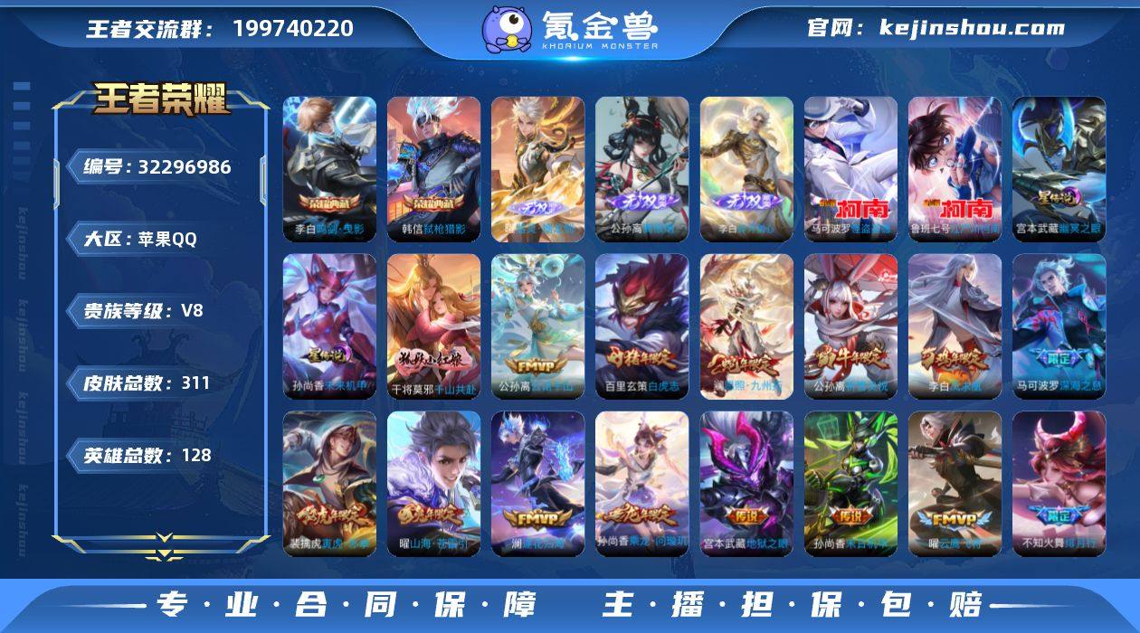 苹果Q-V8-最强王者段位-128英雄-311皮肤-2典藏皮肤-3无双-3珍品传说-24传说-92史诗【英雄全皮】:李白全皮,孙权全皮,敖隐全皮,蒙恬全皮,空空儿全皮,影全皮【荣耀典藏】:李白鸣剑曳影,韩信弑枪猎影【无双皮肤】:曜器灵螭龙剑,公孙离离恨烟,李白碎月剑心【珍品传说】:伽罗沧流箭,鲁班七号江户川柯南,马可波罗怪盗基德【传说皮肤】:干将莫邪千山共赴,公孙离云诺千山,澜愿照九州拓,桑启鸣野蒿,孙尚香乘龙问璇玑,澜逐花归海,孙悟空齐天大圣,曜山海苍雷引,李白诗剑行,不知火舞绯月行,马可波罗深海之息,裴擒虎寅虎赤拳,公孙离祈雪灵祝,铠绛天战甲,虞姬启明星使,曜云鹰飞将,百里玄策白虎志,花木兰冠军飞将,梦奇胖达荣荣,后羿黄金射手座,李白凤求凰,孙尚香末日机甲,宫本武藏地狱之眼,武则天海洋之心【限定皮肤】:公孙离离恨烟,蔡文姬夏日便利店,大乔绒语心约,虞姬夏日便利店,姜子牙天穹之誓,杨戬破阵退雄兵,李白谪仙醉月,狄仁杰阴阳师,赵云皇家上将,赵云引擎之心,孙尚香蔷薇恋人,庄周高山流水,高渐离玩趣恶龙,阿轲迷踪丽影,元歌无心,马可波罗暗影游猎,马可波罗深海之息,狄仁杰魔术师,达摩沙漠行僧,项羽海滩派对,老夫子航海...