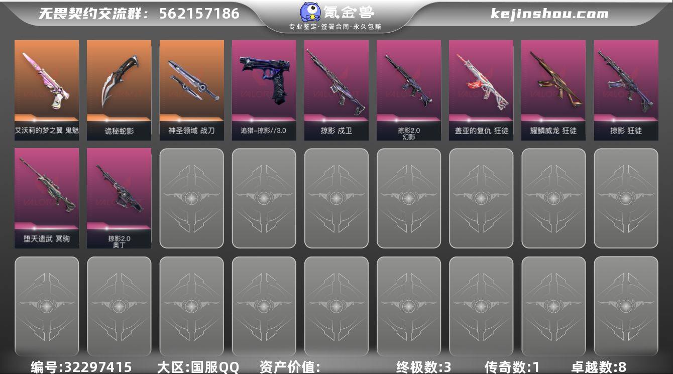 【qyz9360】掠夺3.0 弃王大狙 艾沃利鬼魅 盖亚狂徒 qyz9360 【近战武器】:近战武器-影蝶,近战武器-诡秘蛇影 军刀,近战武器-神圣领域 战刀 【狂徒】:狂徒-掠影,狂徒-盖亚的复仇,狂徒-耀鳞威龙,狂徒-诡秘蛇影 【幻影】:幻影-掠影//2.0,幻影-神圣领域,幻影-末日之翼 【戍卫】:戍卫-掠影,戍卫-月球哨兵,戍卫-折光棱晶 【獠犬】:獠犬-神圣领域 【冥驹】:冥驹-堕天遗武,冥驹-星云暗涌 【飞将】:飞将-末日之翼 【莽侠】:莽侠-诡秘蛇影,莽侠-月球哨兵 【战神】:战神-神圣领域 【奥丁】:奥丁-掠影//2.0,奥丁-末日之翼 【判官】:判官-诡秘蛇影 【雄鹿】:雄鹿-月球哨兵 【骇灵】:骇灵-星云暗涌 【蜂刺】:蜂刺-星云暗涌,蜂刺-折光棱晶 【追猎】:追猎-掠影//3.0 【标配】:标配-折光棱晶 【正义】:正义-月球哨兵 【鬼魅】:鬼魅-艾沃莉的梦之翼,鬼魅-诡秘蛇影,鬼魅-星云暗涌 【狂怒】:狂怒-神圣领域 【短炮】:短炮-末日之翼 【卡面】:精灵大战 卡面,南瓜盛典 卡面,红鳞松叶 卡面,Clutch 卡面,无畏契约:尚勃勒 卡面,无畏契约GO!第一卷:芮娜 卡面,无畏契约GO!第一卷:零 卡面,无畏契约GO!第一卷:贤者 卡面,代号红色 卡面,新兵报到 卡面,V...