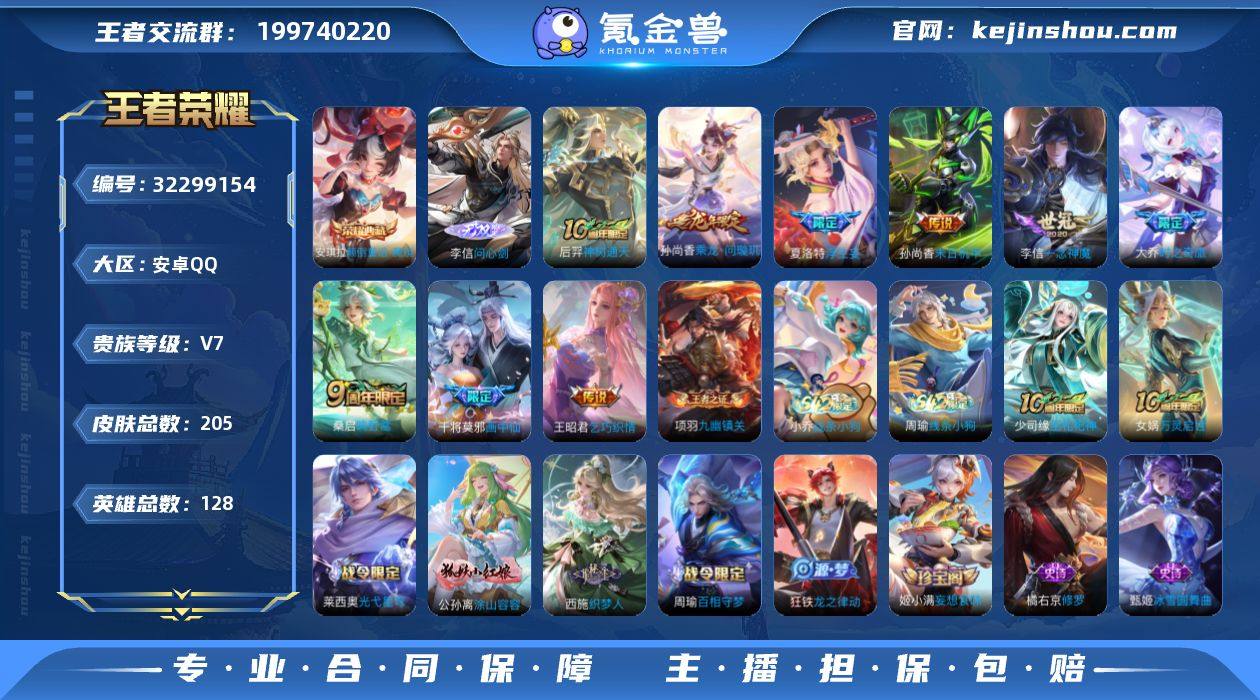 CHC51056 李信问心剑/安琪拉颠倒童话魔镜/安卓Q-V7-最强王者段位-128英雄-205皮肤-1典藏皮肤-1无双-9传说-56史诗 【英雄全皮】:孙权全皮,敖隐全皮,影全皮 【荣耀典藏】:安琪拉颠倒童话魔镜 【无双皮肤】:李信问心剑 【传说皮肤】:后羿神树通天,桑启鸣野蒿,孙尚香乘龙问璇玑,大乔时之奇旅,夏洛特浮生妄,干将莫邪画中仙,王昭君乞巧织情,李信一念神魔,孙尚香末日机甲 【限定皮肤】:虞姬夏日便利店,姜子牙天穹之誓,狄仁杰阴阳师,赵云皇家上将,孙尚香蔷薇恋人,芈月幻夜卜梦,元歌无心,狄仁杰魔术师,达摩沙漠行僧,项羽海滩派对,兰陵王金庭之子,李元芳云中旅人,杨玉环寅虎心曲,干将莫邪画中仙,雅典娜黎明之约,鬼谷子五谷丰年,大乔时之奇旅,黄忠火炮绅士,苏烈千军破阵,梦奇顽趣,沈梦溪大漠名商,裴擒虎擒涛扼浪,嫦娥暖冬兔眠,鲁班大师探海日志,镜匿光追影者,桑启海盐诗旅,夏洛特浮生妄,张良古海寻踪,妲己灵卜魔法,鬼谷子天穹祈灯,姬小满妄想食味,孙尚香乘龙问璇玑,沈梦溪龙舞盛年,鲁班七号蔬乡物语,李元芳蔬乡物语,刘邦剑破天穹,上官婉儿群星魔术团,关羽决胜骁骑,周瑜熔金海岸 【年限皮肤】:杨玉环寅虎心曲,孙尚香乘龙问璇玑...