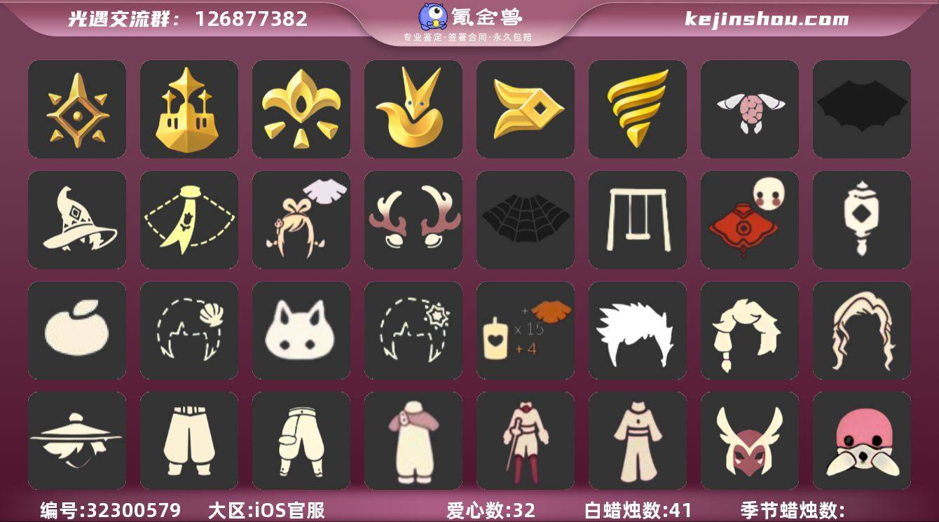 账号类型: 手机账号 季节已毕业: 预言季,梦想季,小王子季,风行季,潜海季,集结季 完成地图: 晨岛,云野,雨林,霞谷,暮土,禁阁 珍稀物品: 阿努比斯(狗头),玫瑰花 礼包: 蝙蝠套,巫师,围巾,绊爱,鹿角,蜘蛛斗,秋千,福娃,灯笼,橘子,贝壳,兔子,雪花,创始人,海龟斗篷 裤子: 武士裤,背带裤,搓澡巾,击剑裤,王子服 面具: 阿努比斯,凤凰面具,贴花面具,呼吸面具,黄眉企鹅面具 面饰: 红耳机 发型: 若笠,虚荣,单侧绑发,小王子发型 头饰: 行军锅头盔,羽毛发饰,蓝色音乐会,平顶帽 斗篷: 蟑螂斗,绿芽,黄色连帽披风 配饰: 雨伞,高音钢琴,玫瑰花,圆鼓 亮点: 【优质装备】:预言季,阿努比斯(狗头),武士裤,梦想季,小王子季(王子季),风行季,潜海季,行军锅头盔(六边锅帽子)(双耳锅帽子),羽毛发饰(多羽发饰),高音钢琴(白色高脚钢琴),集结季,玫瑰花,王子服(小王子套装),蟑螂斗(凤凰斗篷),凤凰面具,贴花面具(丛林黑面具),呼吸面具(潜水面具),黄眉企鹅面具,单侧绑发(单边小辫),小王子发型,黄色连帽披风(连帽斗篷)(斜边队长斗篷),圆鼓(手拍大鼓),蝙蝠套(蝙蝠斗篷)(南瓜头),福娃(福娃礼包)(春之日礼包)(铜钱斗),绊爱(绊爱斗篷)(绊爱礼包),秋千(情人秋千),红耳机,围巾(小王子斗篷)(小王子围巾),鹿角(圣诞鹿角),...