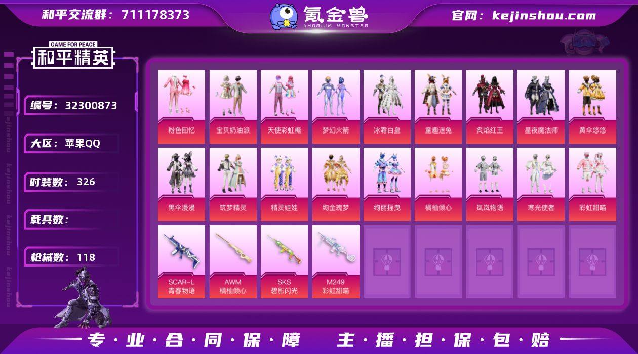 【稀有枪皮】UMP45-萌骑冒险,SKS-碧影闪光,SCAR-L青春物语,AWM橘柚倾心,M249彩虹甜喵