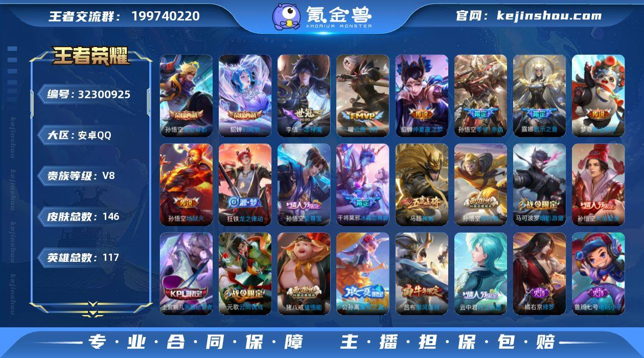 【V8 2典藏 9传说 146皮肤 117英雄】猴子皮肤多/幻阙歌,全息碎影/至尊宝!云鹰飞将,一念神魔,胖达荣荣,仲夏夜之梦,启示之音,异界灵契,地狱火,零号·赤焰,启明星使.神威.大圣娶亲等D,编号:LXQYX70