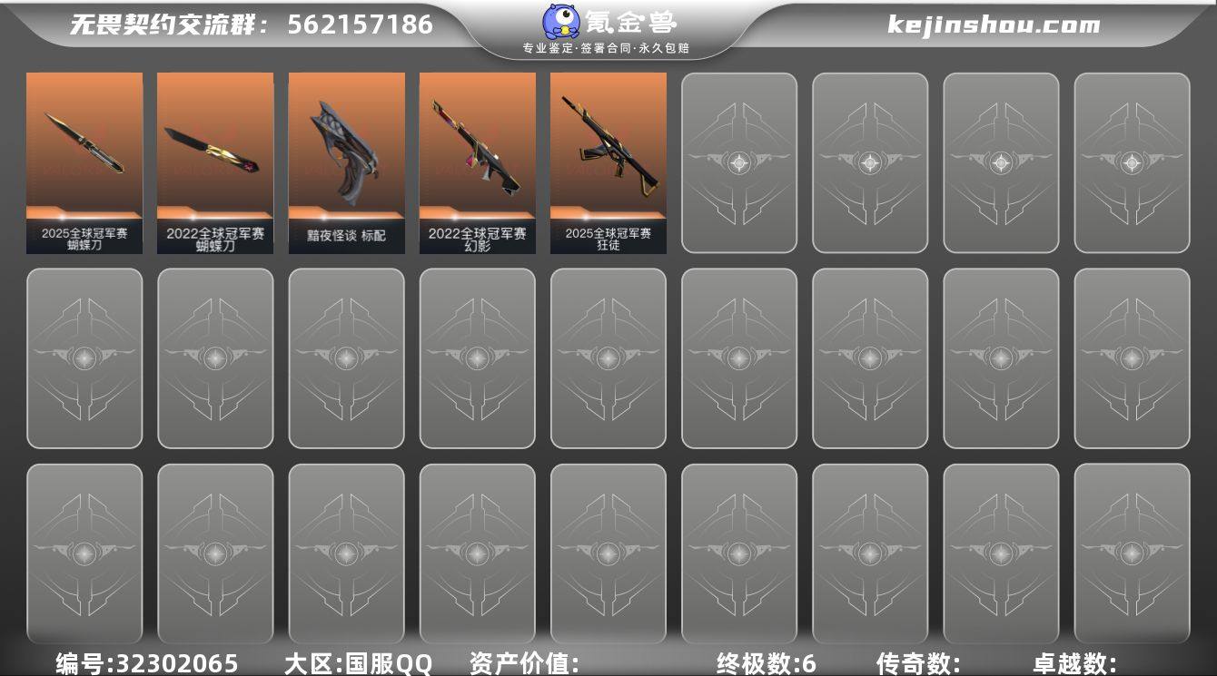 【WWYT175】终极*6/皮肤*8/等级*38/段位:白银/2025全球冠军赛/2022全球冠军赛/幻棱/炼狱/暮蝶/壹决/捷风/雷兹/幽影/不死鸟/贤者/猎枭/芮娜/尚勃勒/夜露/K/O/黑梦/2025全球冠军赛 蝴蝶刀/蝴蝶刀-2022全球冠军赛/影钩/2025全球冠军赛 狂徒/幻影-2022全球冠军赛/骇灵-无限竞技/标配-黯夜怪谈/代号红色 卡面/新兵报到 卡面/V契约 卡面/无畏契约 卡面/无畏契约GO!第一卷:贤者 喷漆/胜利属于无畏契约 喷漆/GLHF 喷漆/无畏契约 喷漆/无畏契约 纪念币 挂饰