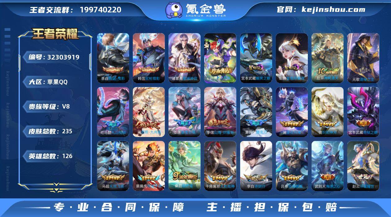 金标源坦猴子李白,万战诸葛亮,苹果Q-V8-最强王者段位-126英雄-235皮肤-3典藏皮肤-1珍品传说-21传说-80史诗【英雄全皮】:空空儿全皮,影全皮【荣耀典藏】:李白鸣剑曳影,诸葛亮星域神启,韩信弑枪猎影【珍品传说】:孙策时之奇旅【传说皮肤】:后羿神树通天,元歌诡秘之主,司马懿九山相柳,澜愿照九州拓,裴擒虎祥瑞亨通,桑启鸣野蒿,夏侯惇霜北刀,亚连落雪白狼,澜逐花归海,李信山海炽霜斩,吕布怒海麟威,李白诗剑行,马超无双飞将,孙策挚爱之约,赵云淬星耀世,镜炽阳神光,虞姬启明星使,干将莫邪久胜战神,梦奇胖达荣荣,宫本武藏地狱之眼,武则天海洋之心【限定皮肤】:夏侯惇霜北刀,暃埋骨钱,蒙犽顽岩魄,蔡文姬夏日便利店,大乔绒语心约,虞姬夏日便利店,姜子牙天穹之誓,李白谪仙醉月,狄仁杰阴阳师,赵云皇家上将,赵云龙胆,妲己时之彼端,元歌无心,马可波罗暗影游猎,狄仁杰魔术师,项羽海滩派对,关羽百相守梦,安琪拉魔法小厨娘,韩信傲雪梅枪,孙悟空至尊宝,刘备百相守梦,虞姬启明星使,钟馗驱傩正仪,百里玄策原初追逐者,李信山海炽霜斩,孙策挚爱之约,妲己灵卜魔法,姬小满妄想食味,亚连落雪白狼,沈梦溪龙舞盛年,刘邦剑破天穹,关羽决胜...