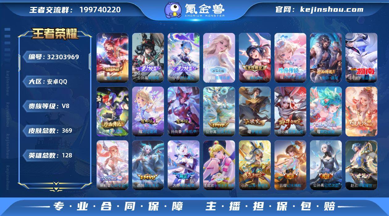 安卓Q-V10-最强王者段位-129英雄-516皮肤-3典藏皮肤-1典藏英雄-1珍品无双-6无双-2珍品传说-47传说-157史诗 【英雄全皮】:阿轲全皮,扁鹊全皮,白起全皮,刘邦全皮,孙权全皮,娜可露露全皮,橘右京全皮,刘备全皮,太乙真人全皮,鬼谷子全皮,梦奇全皮,公孙离全皮,狂铁全皮,大司命全皮,敖隐全皮,蒙恬全皮,阿古朵全皮,夏洛特全皮,莱西奥全皮,戈娅全皮,空空儿全皮,影全皮,海诺全皮 【荣耀典藏】:武则天英雄,李白鸣剑曳影,韩信弑枪猎影,瑶拾光映像 【珍品无双】:貂蝉馥梦繁花 【无双皮肤】:诸葛亮天机白泽,公孙离离恨烟,韩信群星魔术团,李白碎月剑心,妲己青丘九尾,武则天神器明辉仪 【珍品传说】:鲁班七号江户川柯南,马可波罗怪盗基德 【传说皮肤】:云缨神骥越千峰,关羽神骥镇沧海,朵莉亚神骥鸣幻洲,狄仁杰神骥赴朔漠,貂蝉神骥聚万邦,马超神骥逐星野,大司命死亡执政官,司马懿九山相柳,公孙离云诺千山,澜愿照九州拓,云缨幻光神枪,裴擒虎祥瑞亨通,桑启鸣野蒿,艾琳觅芳踪,狄仁杰夜礼服假面,王昭君永恒水手月亮,马可波罗妄想实况,张飞百相守梦,公孙离记忆之芯,夏洛特浮生妄,干将莫邪画中仙,花木兰燃星之曲,狄仁杰神器狴犴令,不知火舞绯月行,橘右京枫霜尽,娜可露露前尘镜,裴擒虎寅虎赤拳,孙尚香异界灵契,赵云淬星耀世,曜李逍遥 ,公孙离祈雪灵祝,铠绛天战甲,镜炽阳神光,虞姬启明星使,曜云鹰飞将,李信一念神魔,刘备时之恋人,干将莫邪久胜战神,百里玄策白虎志,梦奇胖达荣荣,貂蝉仲夏夜之梦,李白凤求凰,孙尚香末日机甲,宫本武藏地狱之眼,吕布天魔缭乱,武则天海洋之心,狄仁杰超时空战士 【限定皮肤】:白起狰,公孙离离恨烟,蔡文姬夏日便利店,大乔绒语心约,虞姬夏日便利店,姜子牙天穹之誓,杨戬破阵退雄兵,李白谪仙醉月,狄仁杰阴阳师,虞姬凯...