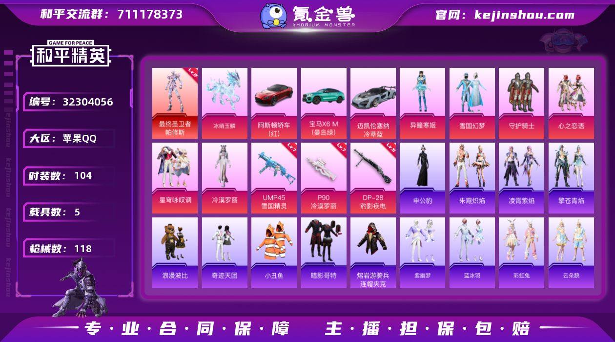 【AZH1694】苹果 手Q【雪国幻梦 2级帕修斯 满级雪国精灵UMP45满级冷漠罗丽P90】1神装-6粉装-3特效枪-5载具-3粉色飞行器-47246热力值-8王牌印记-104套装-118枪皮 【红色神装等级】:最终圣卫者-帕修斯(二级) 【红色角色神装】:最终圣卫者-帕修斯 【热门品类】:粉装-雪国幻梦,套装-小丑鱼,套装-SS1特训,套装-暗影哥特,套装-浪漫波比,熔岩游骑兵连帽夹克 【粉色载具】:阿斯顿马丁DBS(红),宝马X6 M(曼岛绿),迈凯伦塞纳(冷萃蓝),冰绡玉鳞 【粉色套装】:粉装-守护骑士,粉装-雪国幻梦,粉装-心之恋语,粉装-星穹咏叹调,角色-冷漠罗丽,角色-异瞳寒姬 【粉色枪皮等级】:UMP45-雪国精灵(七级),P90-冷漠罗丽(七级),DP-28-豹影疾电(五级) 【粉色枪皮】:UMP45-雪国精灵,P90-冷漠罗丽,DP-28-豹影疾电 【粉色飞行器】:春暖花开飞行器,灵珠游龙飞行器 【粉色降落伞】:凝视深渊降落伞,雪国幻梦降落伞,心之恋语降落伞,星之彼岸降落伞,垂柳戏鸭降落伞,幻彩电音降落伞,冷漠罗丽降落伞,魔童闹海 敖丙降落伞 【稀有套装】:套装-紫幽梦,套装-蓝冰羽,套装-彩虹兔,套装-云朵鹅,套装-雪绒豹,角色-时希公主,角色-灵公主,角色-乐音,套装-朱霞炽焰,套装-凌...